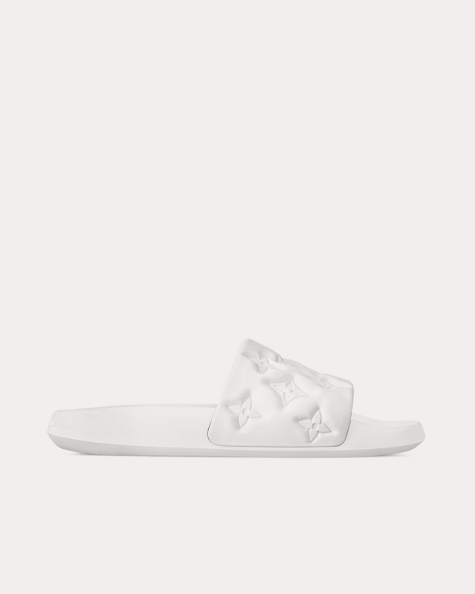 Les mules Louis Vuitton Waterfront pour homme en blanc sont fabriquées en caoutchouc imperméable et présentent un monogramme en relief sur la tige, des semelles intérieures anatomiques pour plus de confort, des semelles extérieures légères et flexibles, ainsi que des brides avant. Fabriquées en Italie.