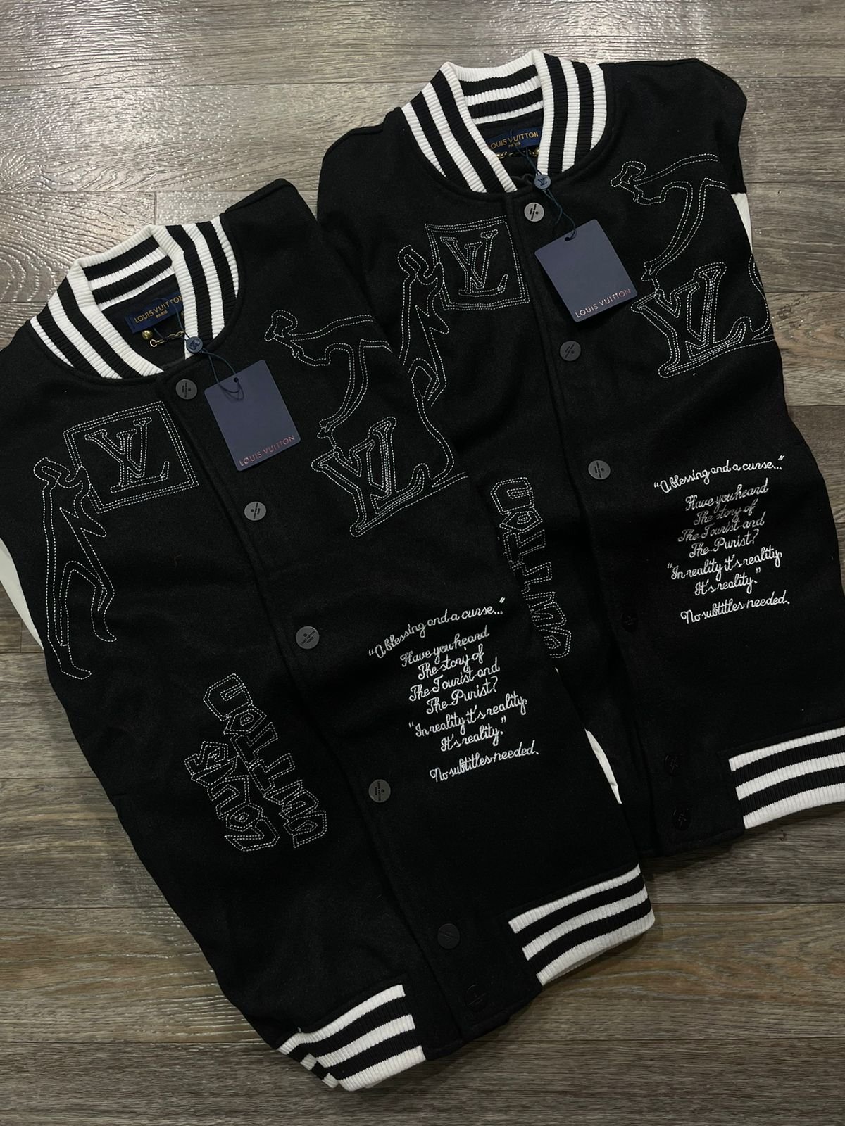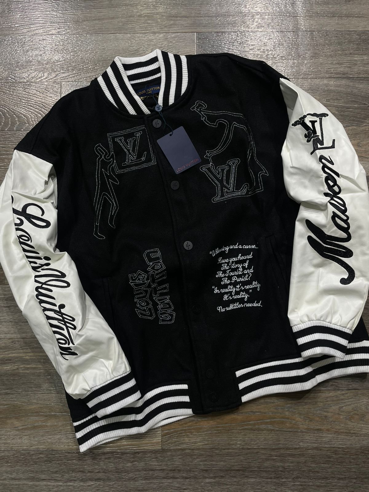 LOUIS VUITTON || Veste universitaire en cuir et laine Forever