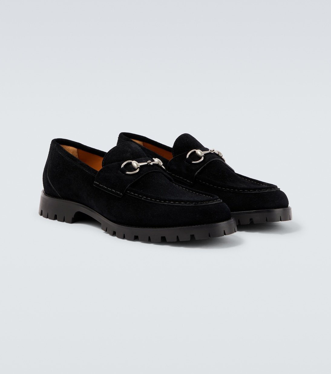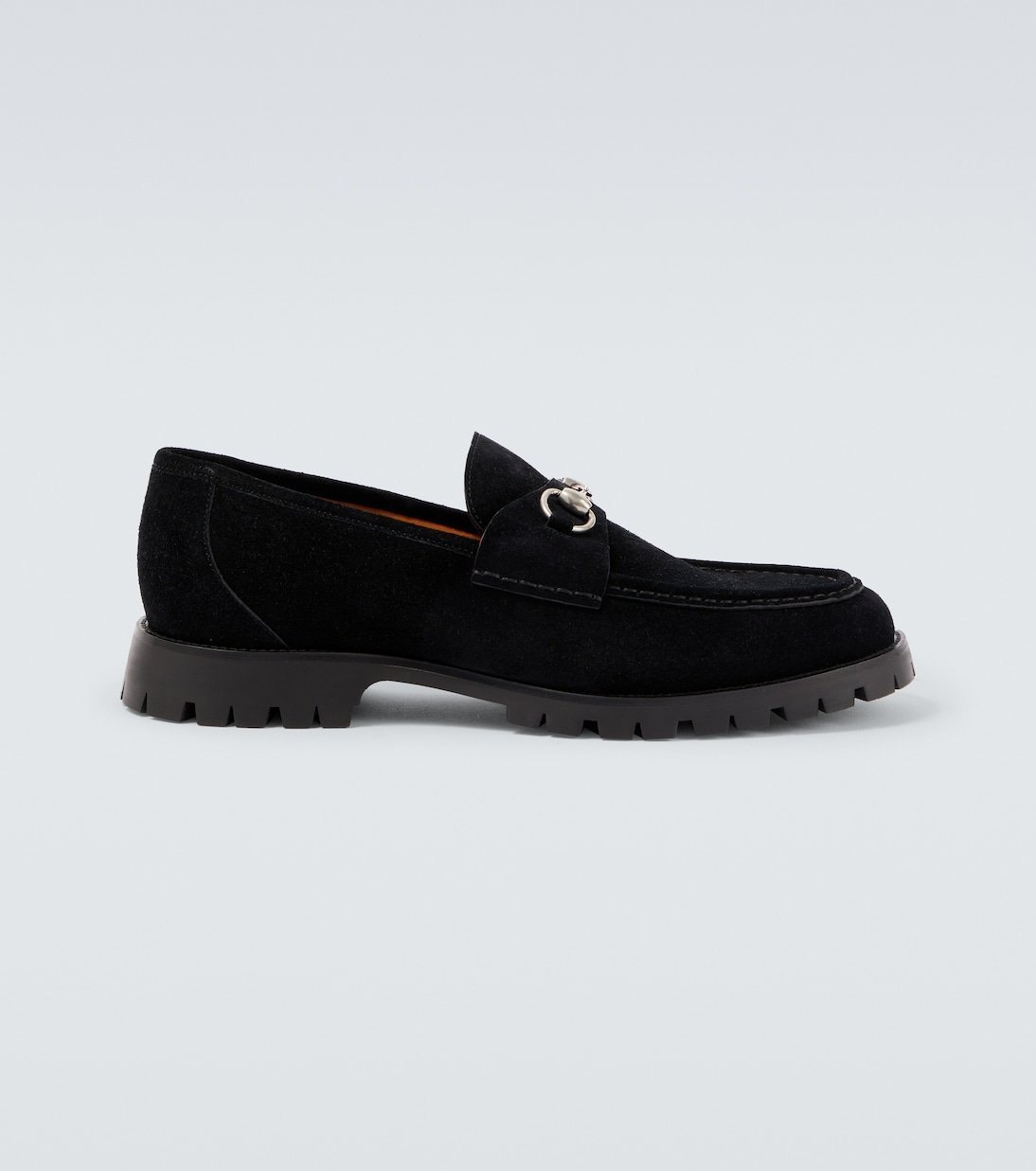Réalisés en Italie à partir de daim, ces mocassins à semelles crantées sont rehaussés de finitions métalliques argentées emblématiques. Le mors Horsebit, l’un des emblèmes phares de Gucci, rappelle la fascination historique de la maison pour les codes du design équestre.