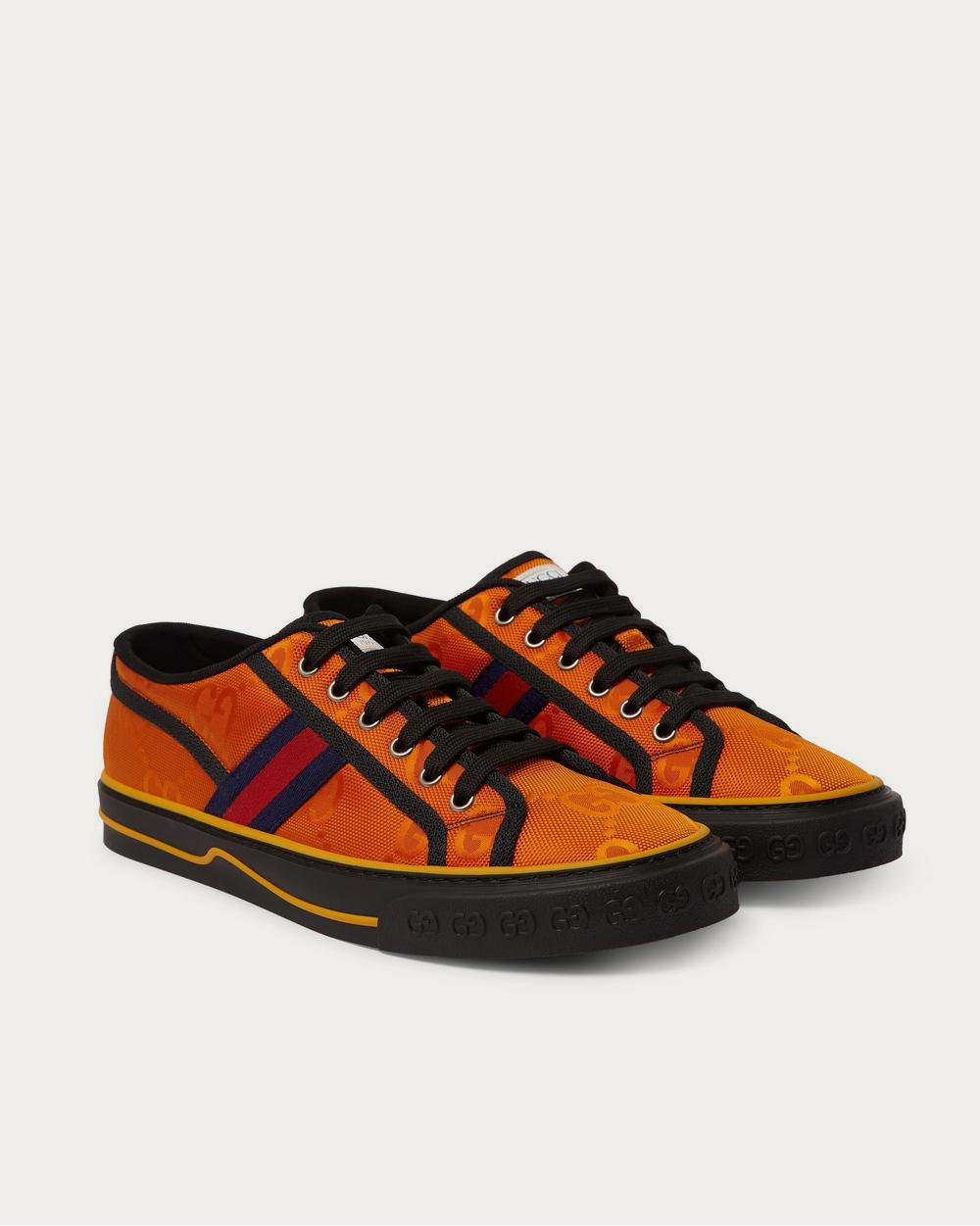 Baskets basses orange en toile ECONYL monogrammée Gucci Off the Grid avec bordure en sangle