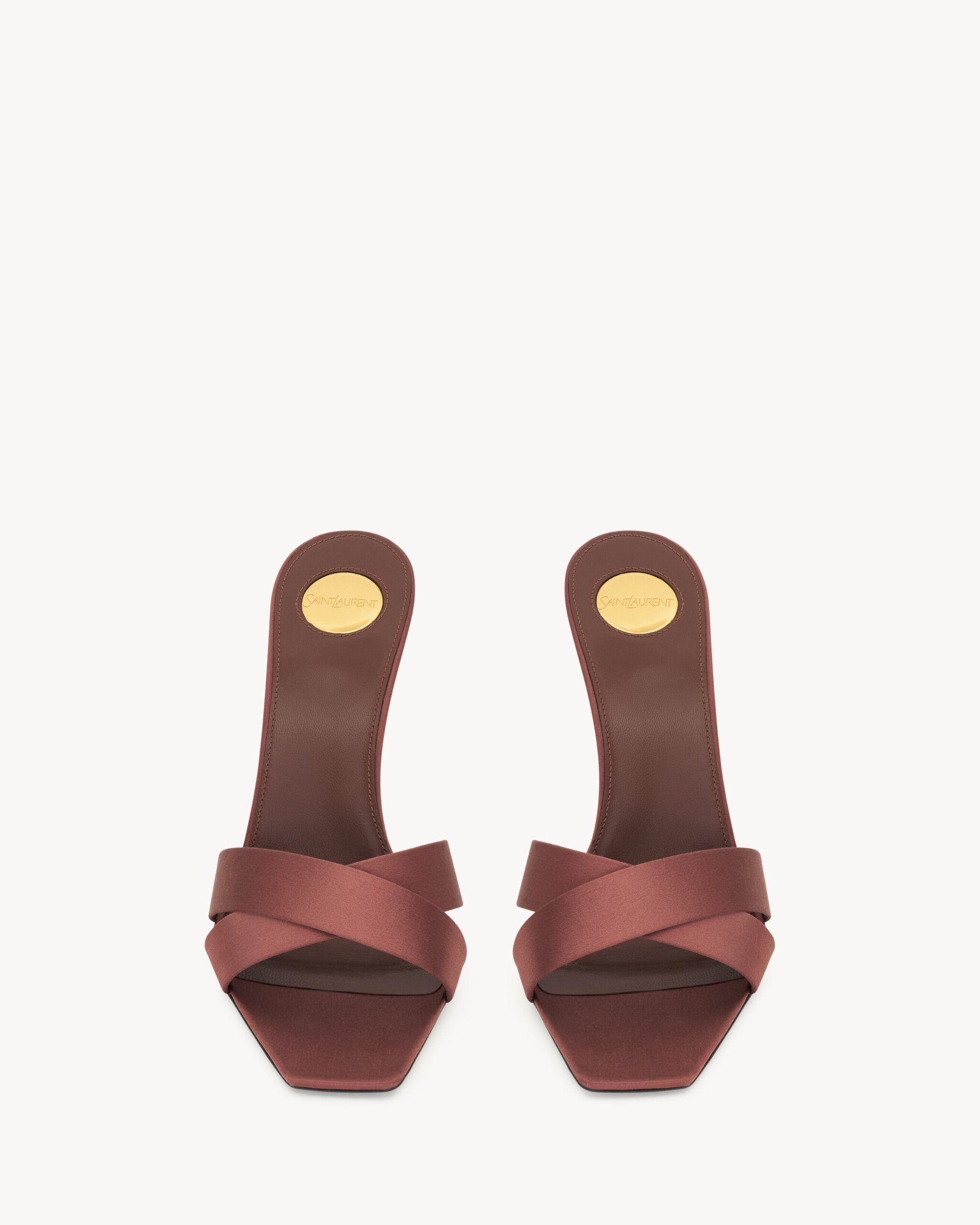 Mules dotées d’un talon CASSANDRE, d’un bout carré et de brides croisées.