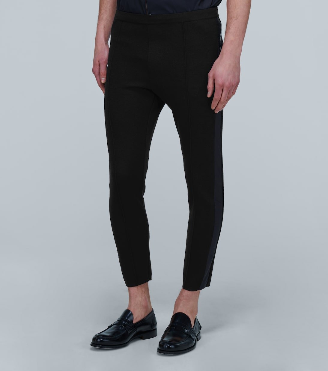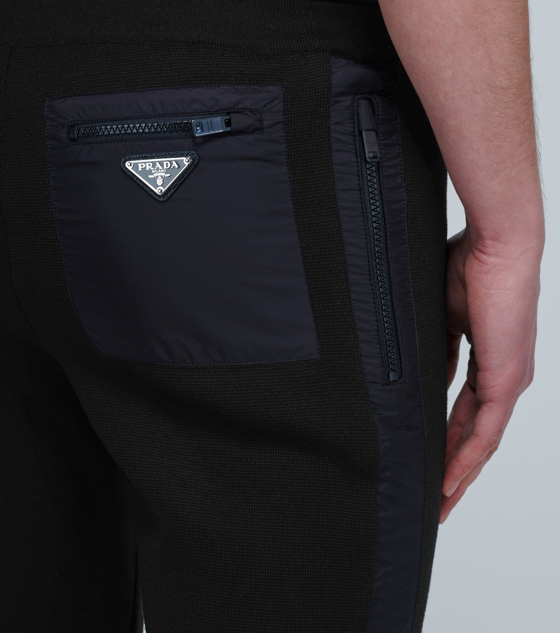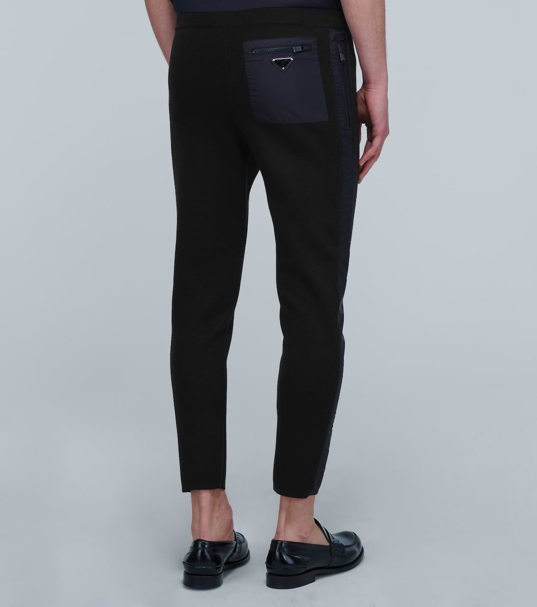 Fabriqué en Italie en laine, ce pantalon de survêtement stretch de Prada est orné d’empiècements noirs contrastants sur le côté et sur les poches. Il arbore le logo triangle emblématique de la marque.