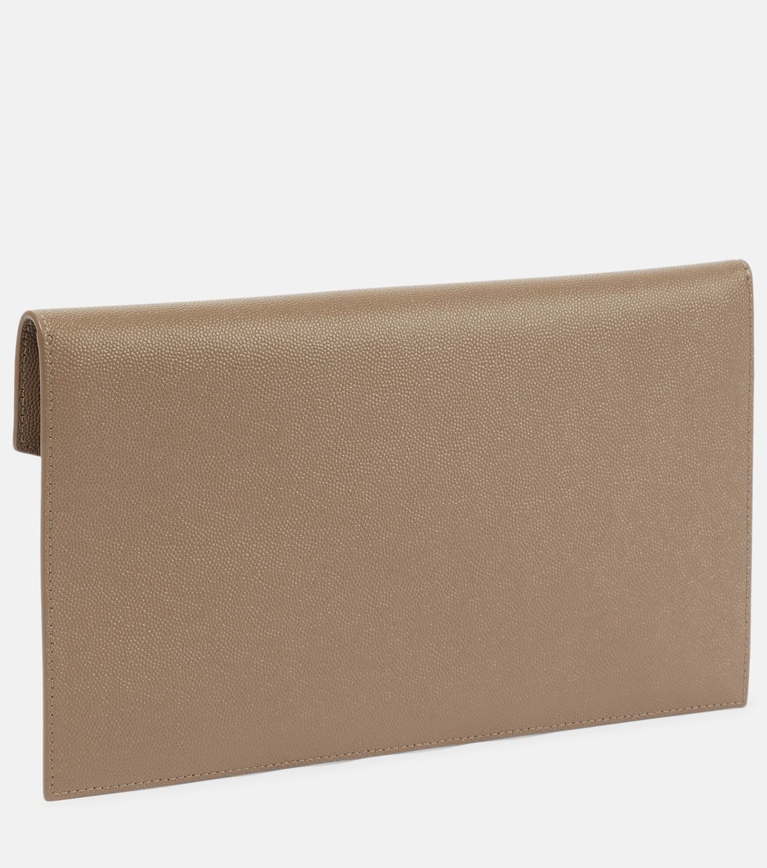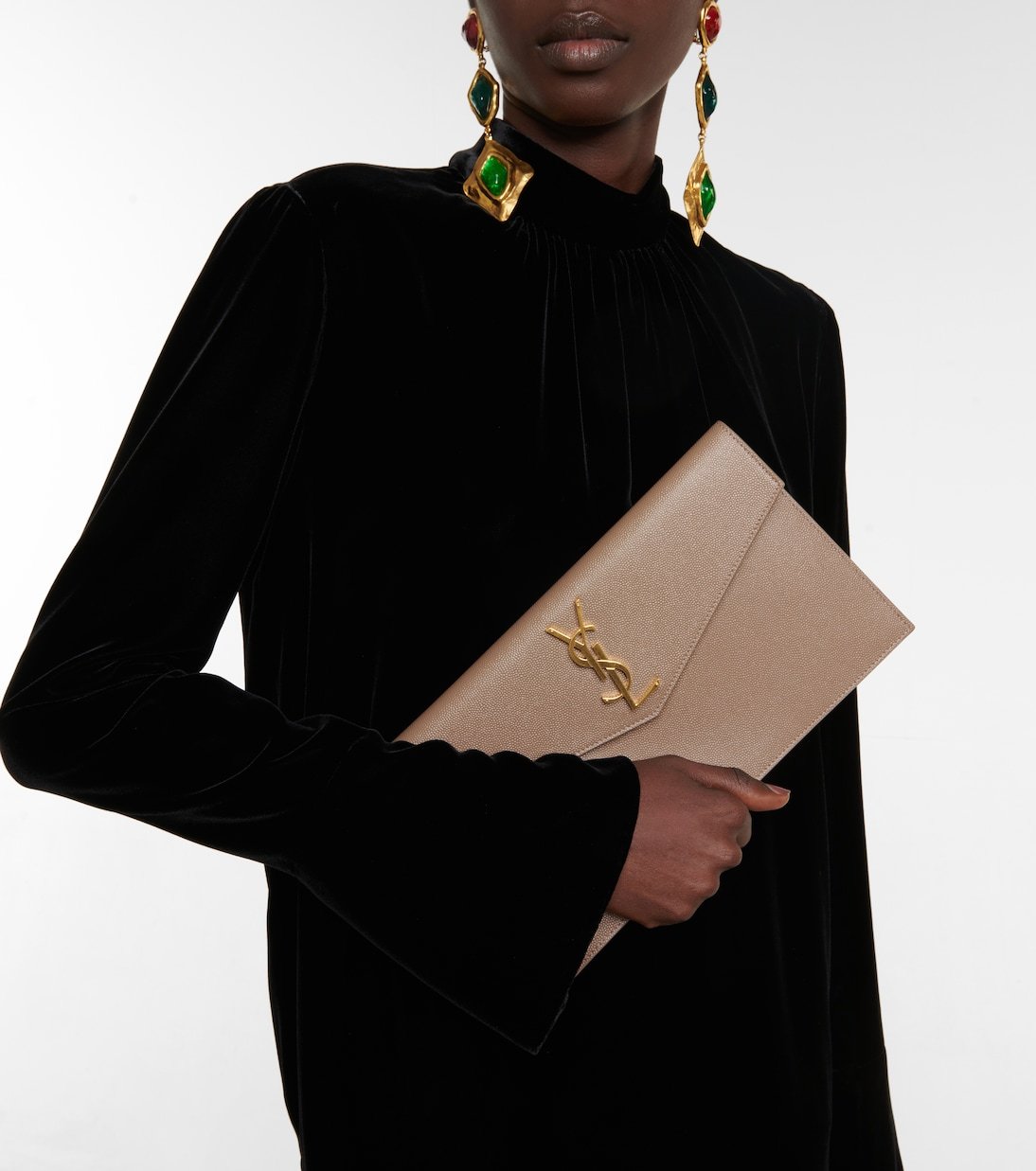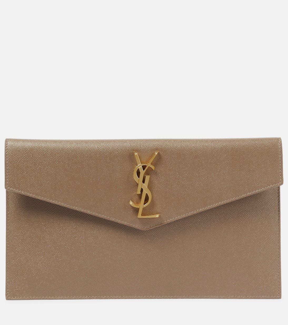 Complétez votre collection d’accessoires de modèles intemporels, à l’image de la pochette Uptown de Saint Laurent. De conception italienne, elle est réalisée en cuir grainé taupe et dévoile une silhouette enveloppe à fermoir magnétique. Elle est ornée du monogramme YSL iconique du label en métal doré.