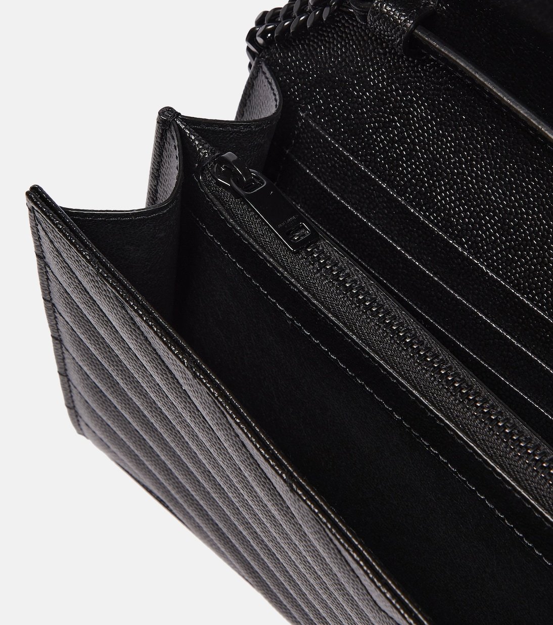 Apportez une note glamour minimaliste à votre tenue avec le portefeuille à chaîne Cassandre de Saint Laurent. Réalisé en cuir matelassé noir et rehaussé d’un monogramme ton sur ton, ce modèle dispose de 10 fentes à cartes et d’une pochette pour la monnaie.