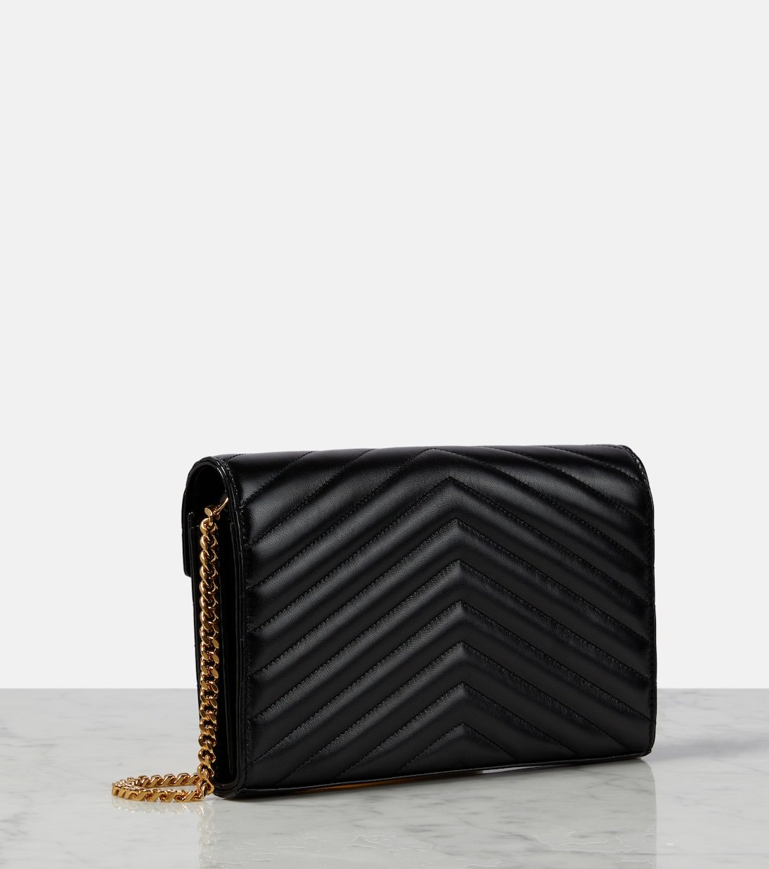 Le portefeuille Cassandre de Saint Laurent sera votre nouveau compagnon de soirée. Réalisé en cuir matelassé noir, il arbore le monogramme YSL emblématique du label sur le rabat, et dispose de deux compartiments principaux, de dix fentes à cartes et d’une bandoulière chaîne amovible.