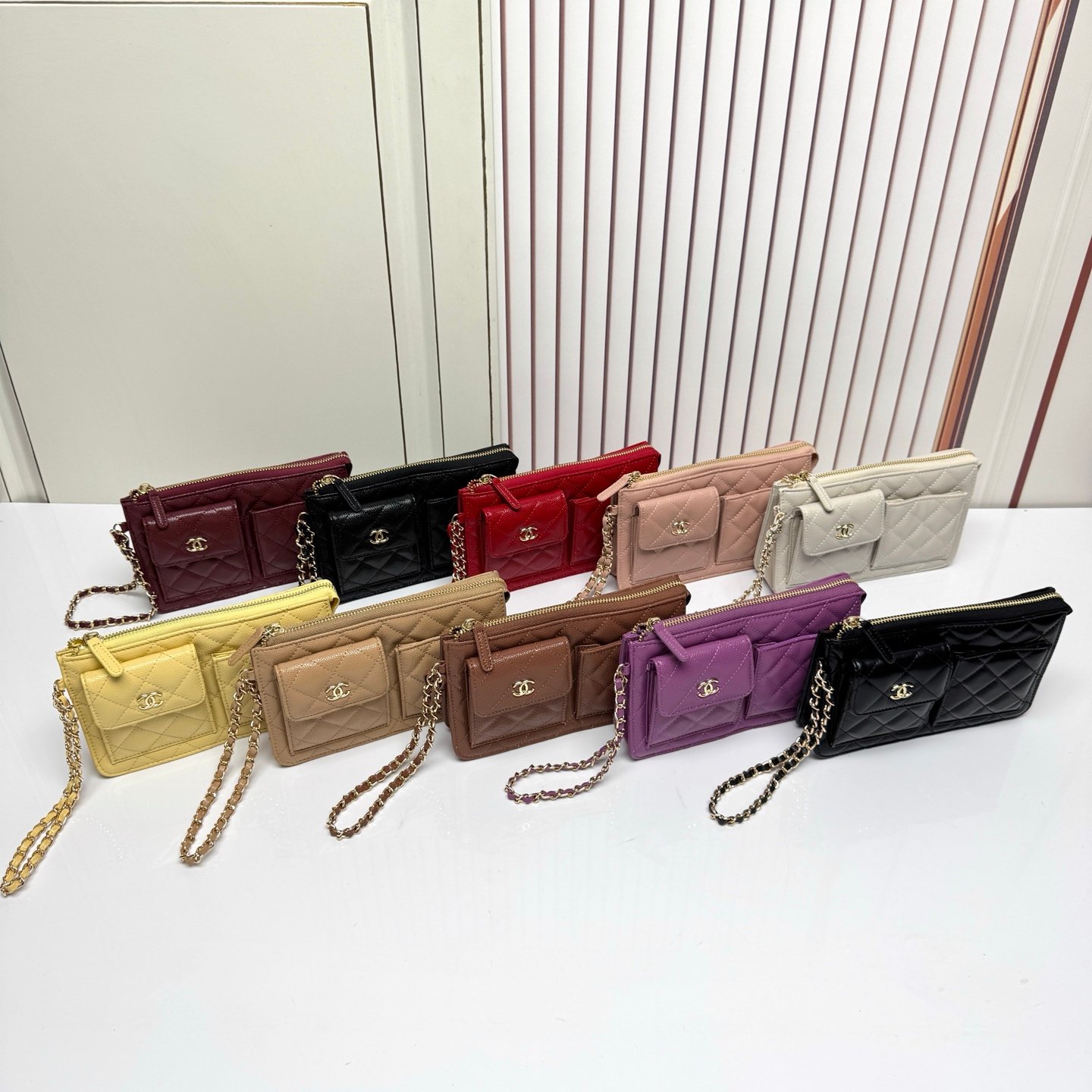 Découvrez notre portefeuille Chanel avec bandoulière, alliant élégance et praticité. Confectionné en matériaux de haute qualité, il offre une capacité optimale pour vos essentiels. Disponible en plusieurs couleurs raffinées (Blanc, Jaune, Rose, Rouge, Violet, Bordeaux, Noir, Marron, Beige), il allie style intemporel et fonctionnalité. Son design compact et léger facilite le port à l’épaule ou en main, parfait pour une utilisation quotidienne ou en soirée. Investissez dans un accessoire de luxe durable, alliant sophistication et praticité.
