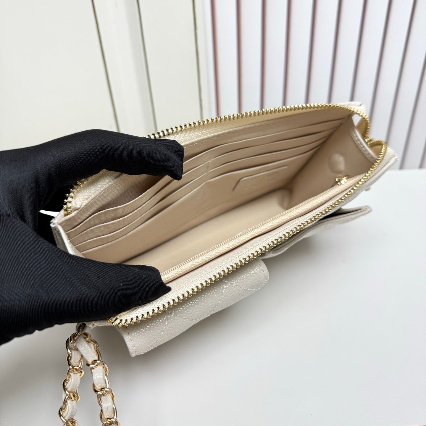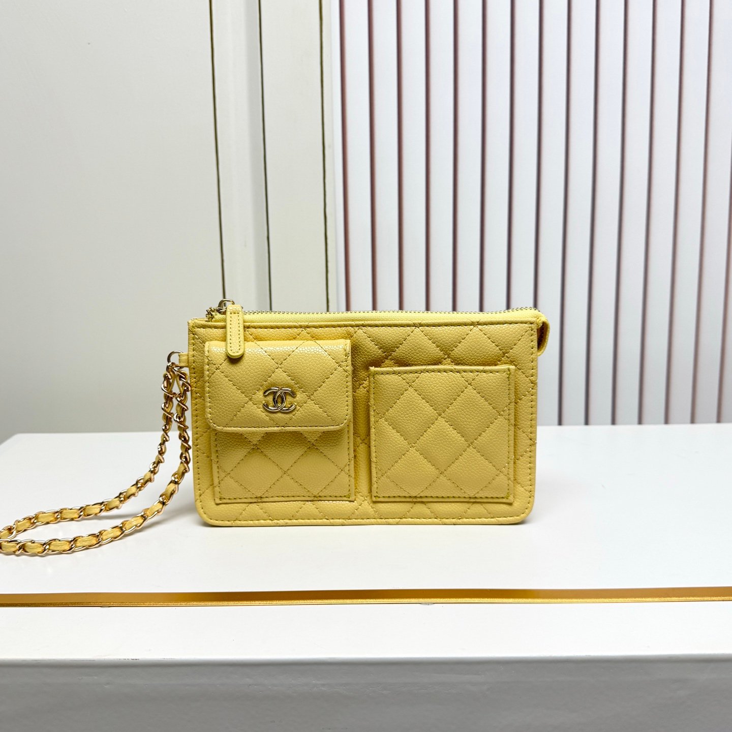 Ce portefeuille Chanel avec bandoulière vous permet de transporter vos essentiels en toute sécurité tout en ajoutant une touche de luxe à votre look quotidien. Facile à porter, il s’adapte à votre rythme de vie tout en restant élégant et pratique.
