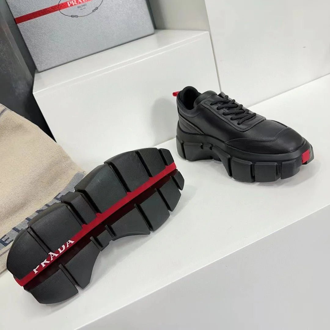 Rehaussez votre style urbain avec les baskets en cuir à logo PRADA. Fabriquées en cuir de haute qualité, ces baskets allient élégance et durabilité. Le logo PRADA emblématique ajoute une touche de luxe et leur design classique les rend parfaites au quotidien. Rehaussez votre style avec PRADA.