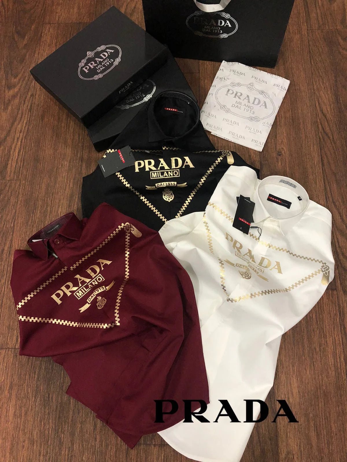 PRADA || Chemise à manches longues en popeline avec logo triangulaire