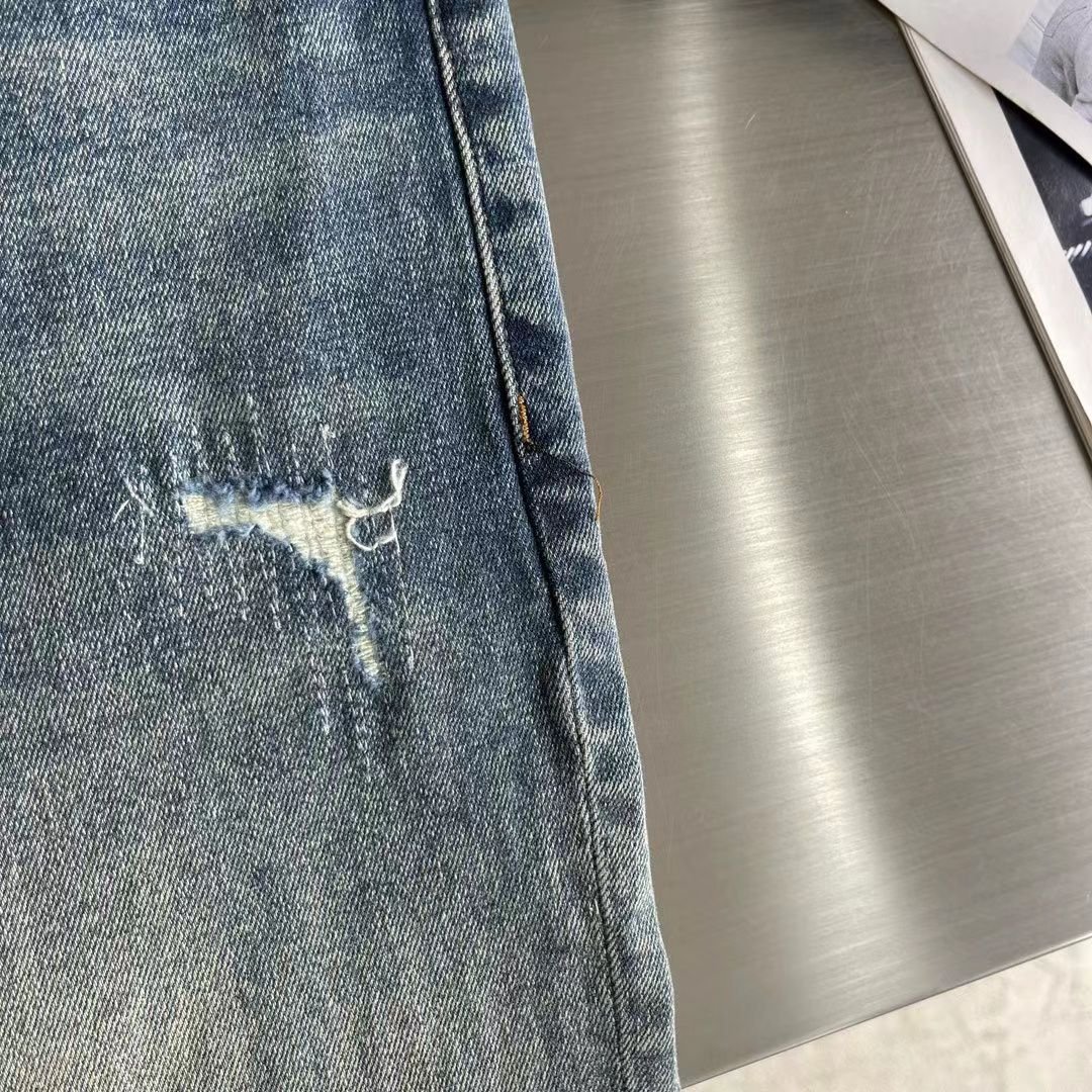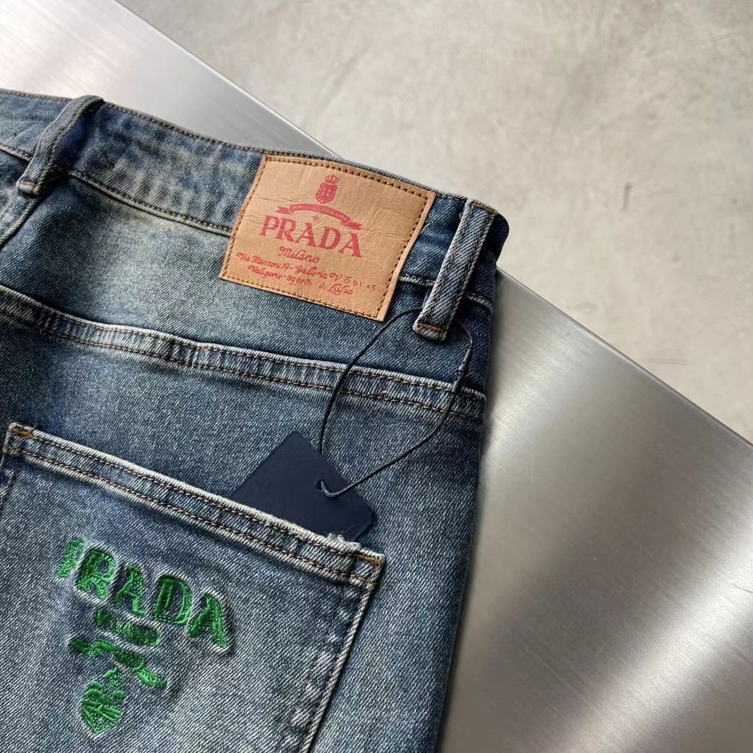 PRADA || Jean long en denim robuste délavé dégradé pour homme