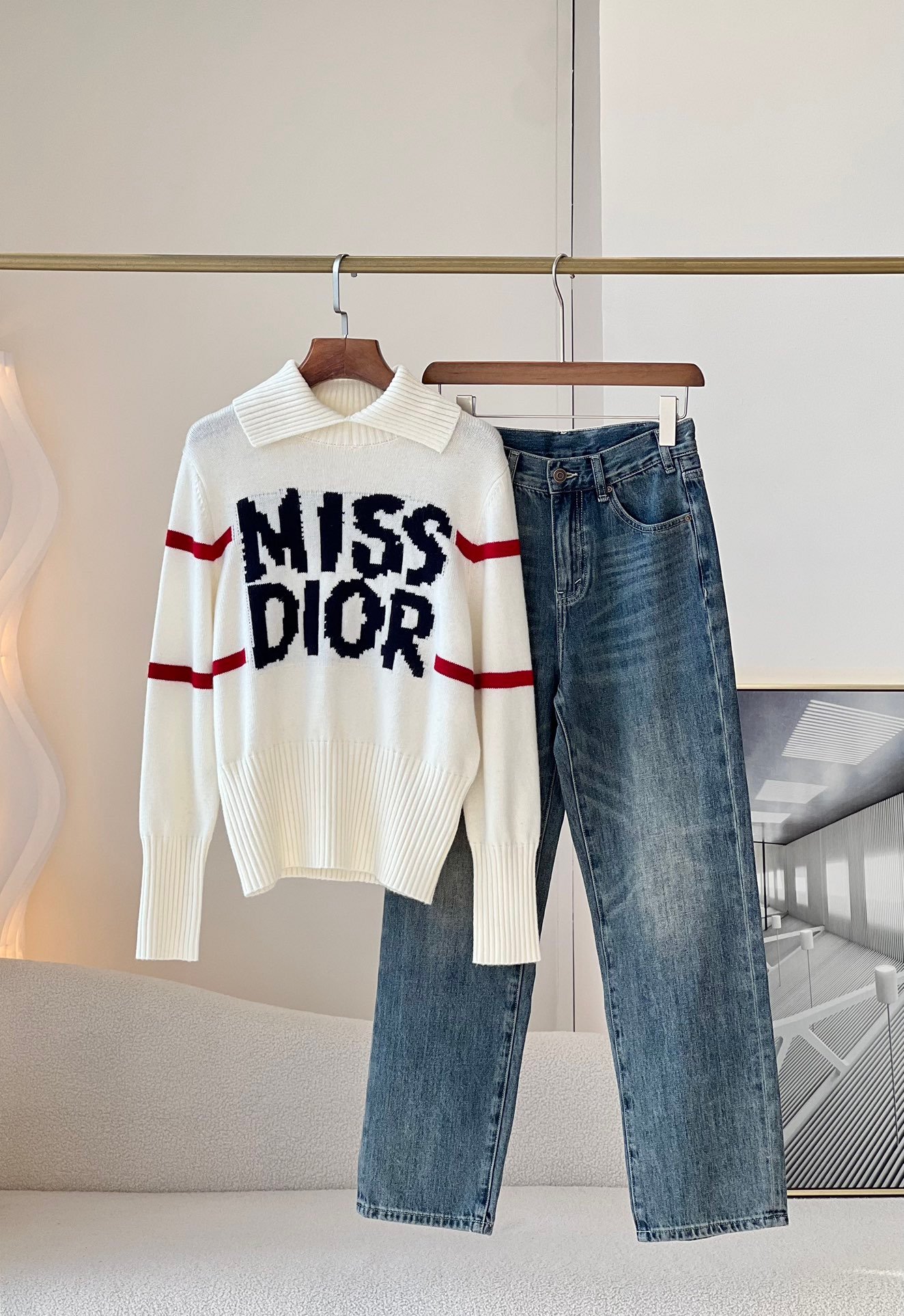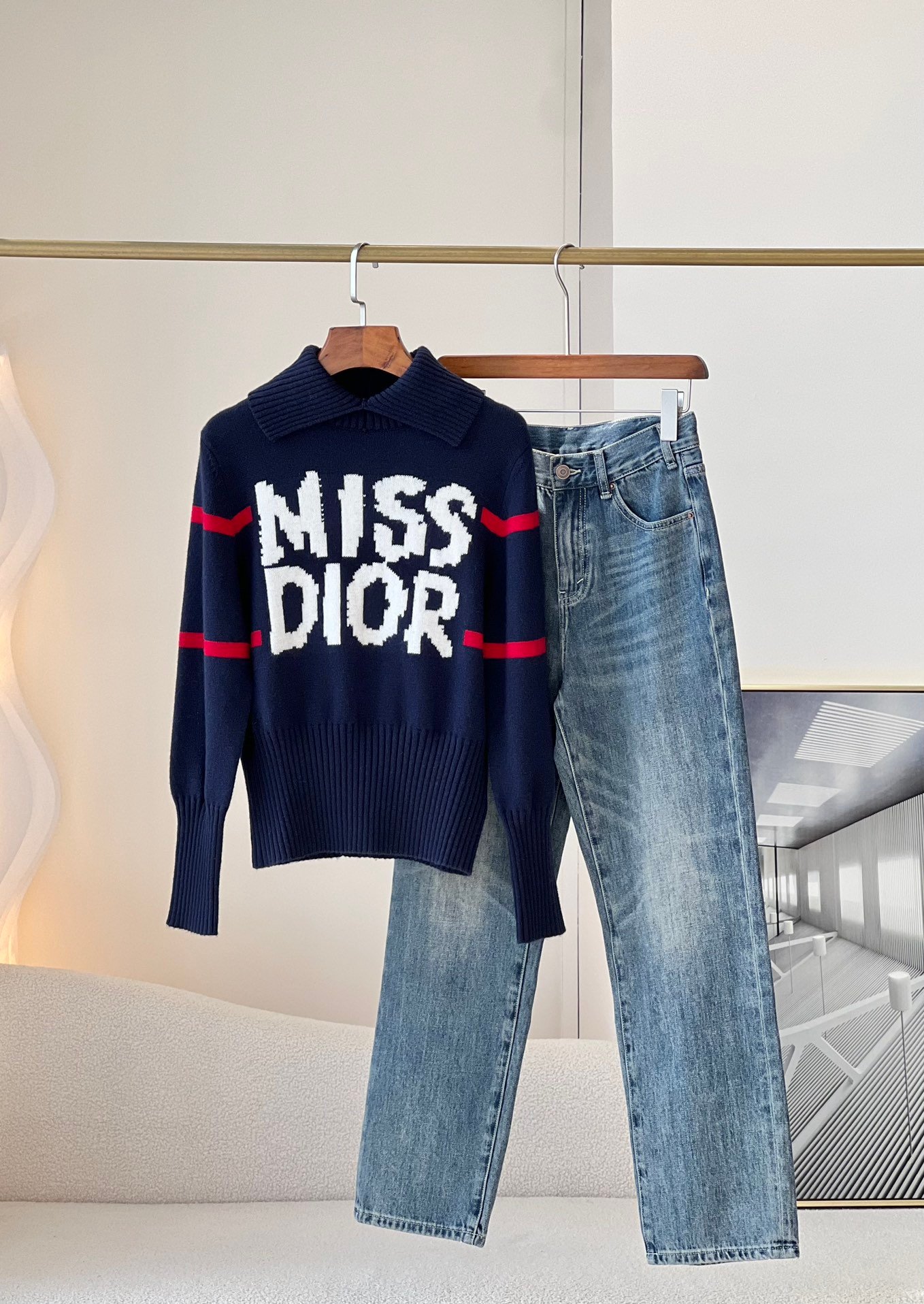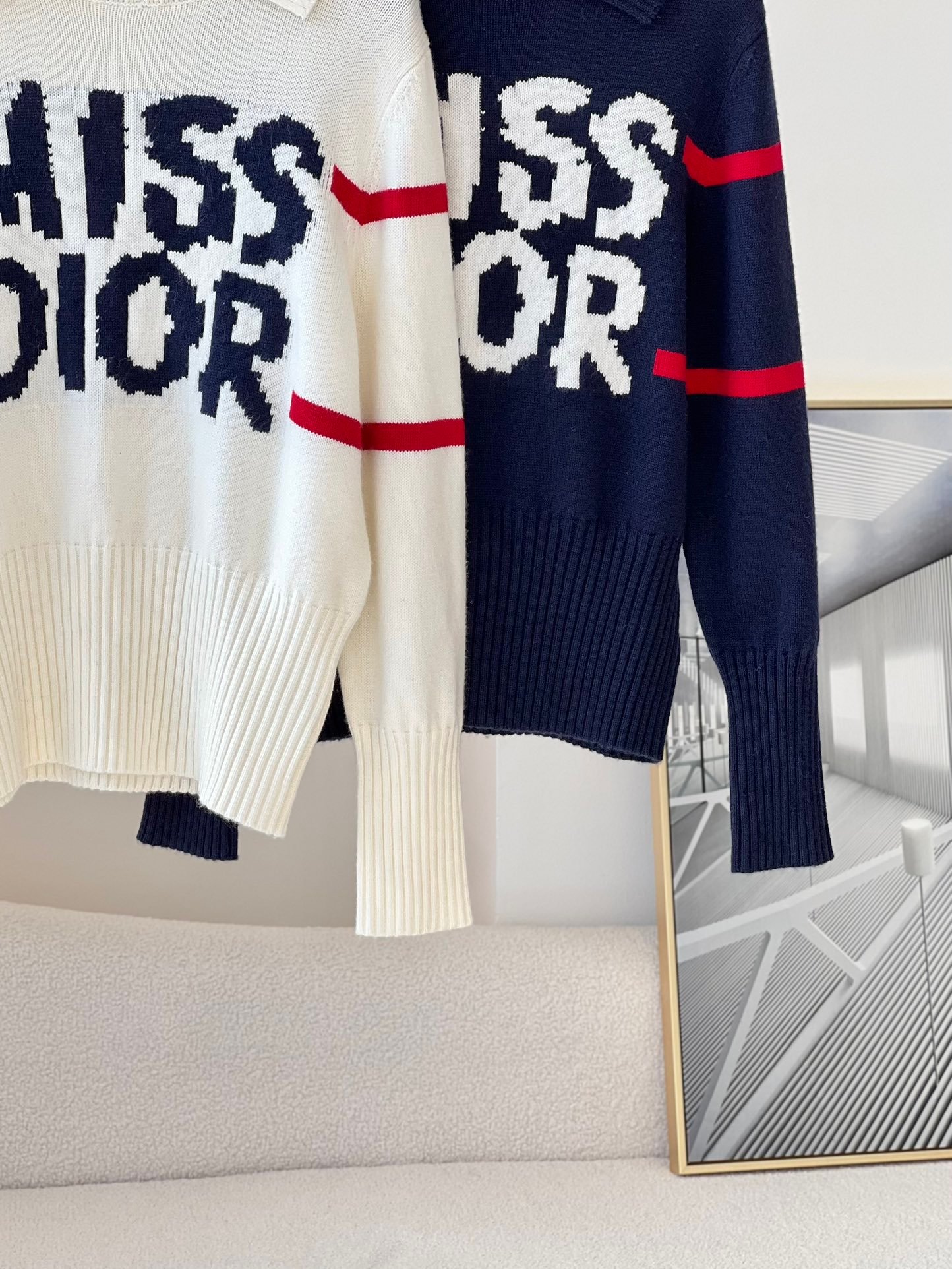 Disponible en deux coloris – blanc ivoire ou bleu marine – ce modèle allie confort, modernité et raffinement typique de la Maison Dior. Parfait à associer avec un jean, une jupe ou un pantalon habillé pour un look intemporel.