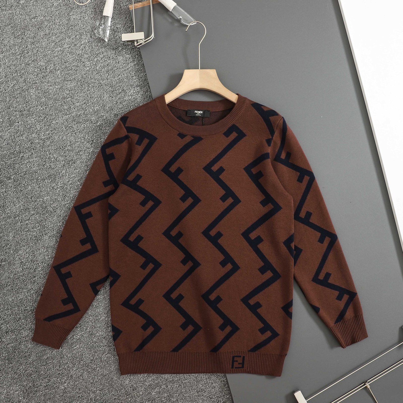 Pull Fendi homme en laine, motif FF jacquard, disponible en 2 coloris.