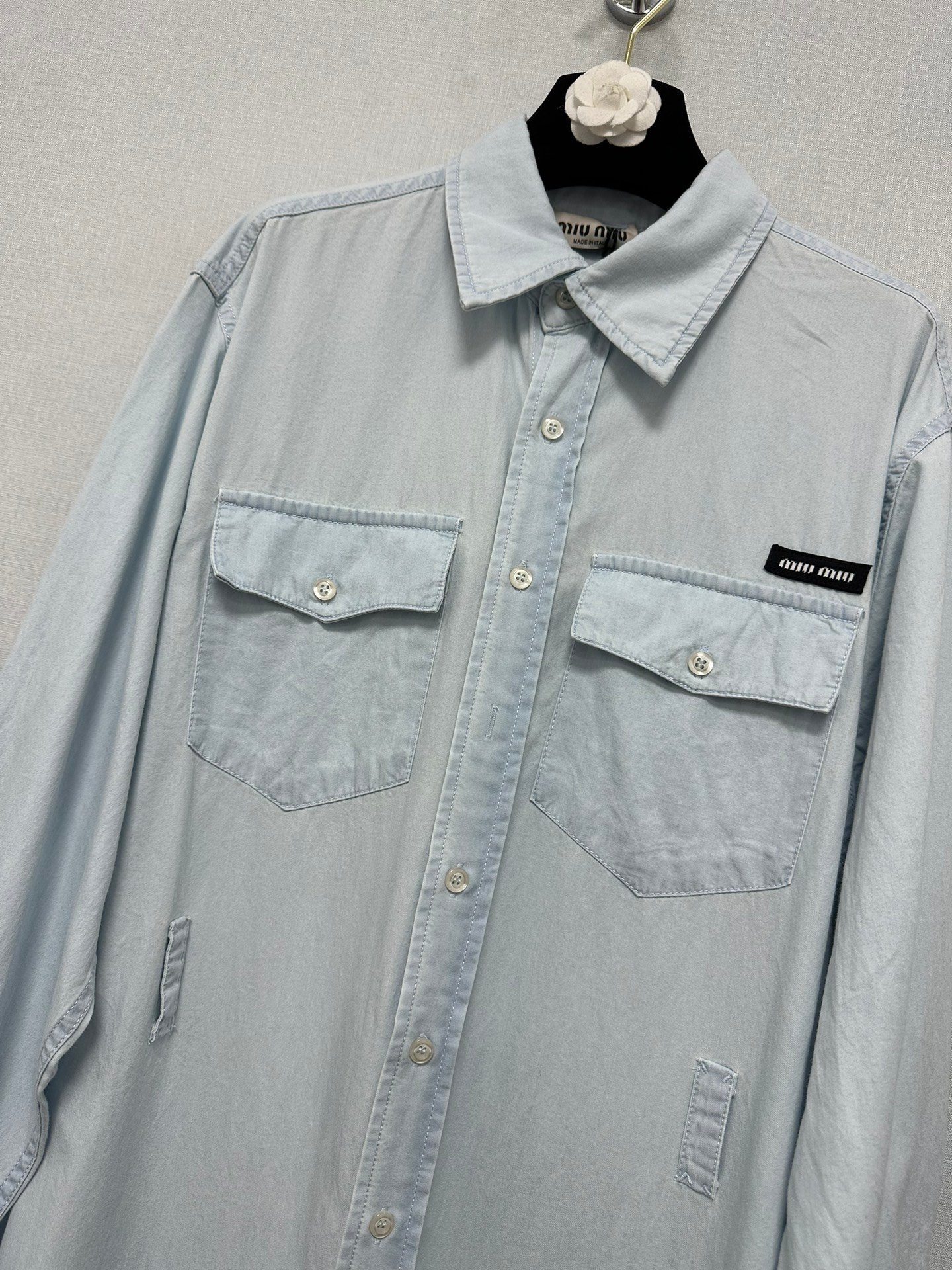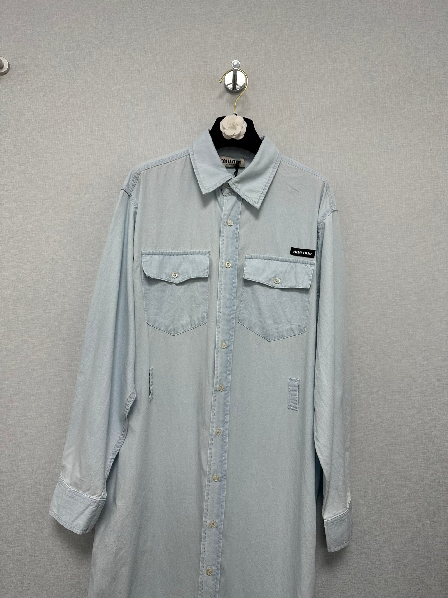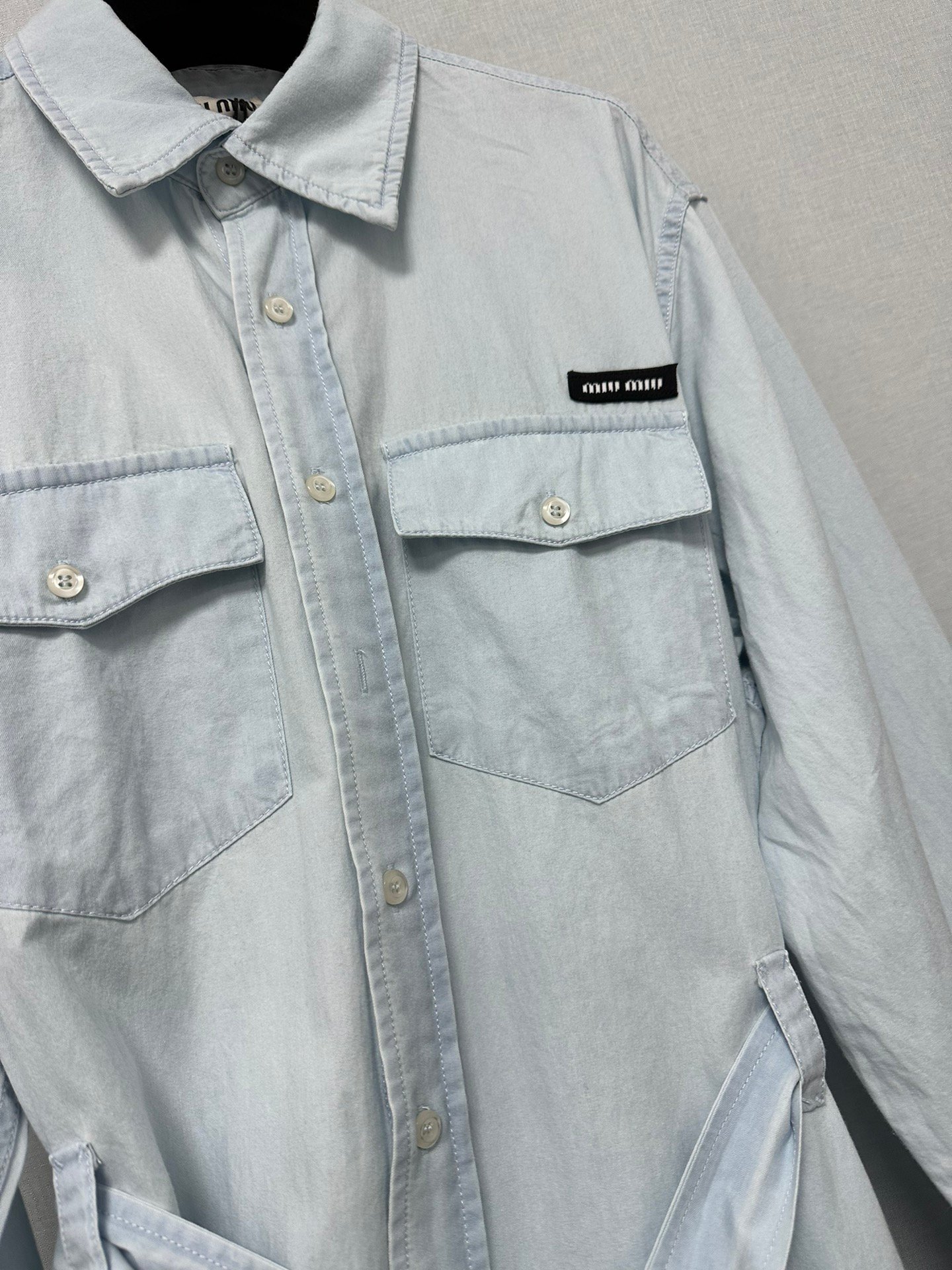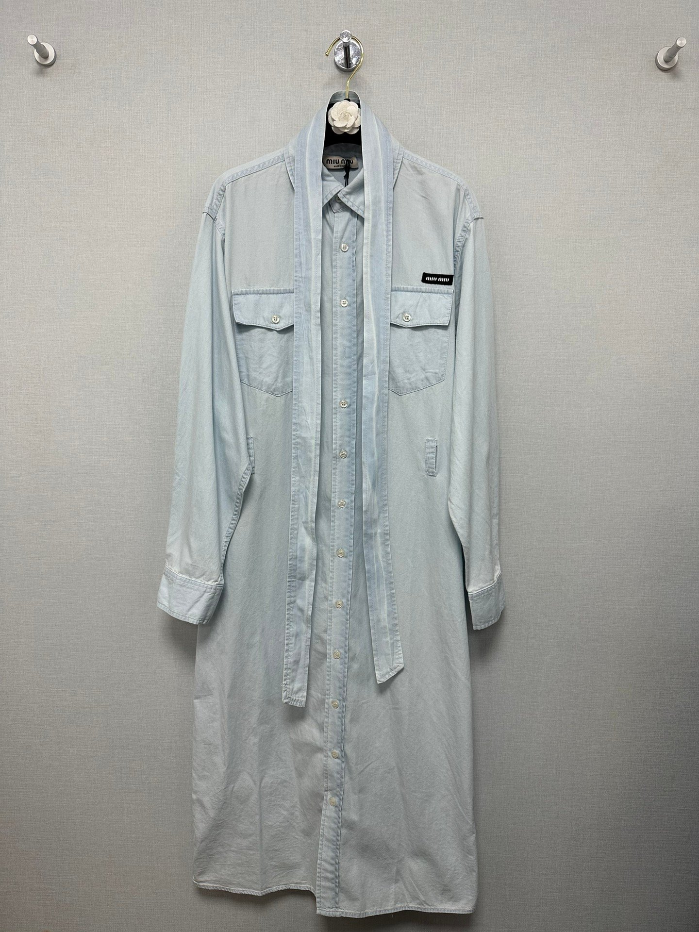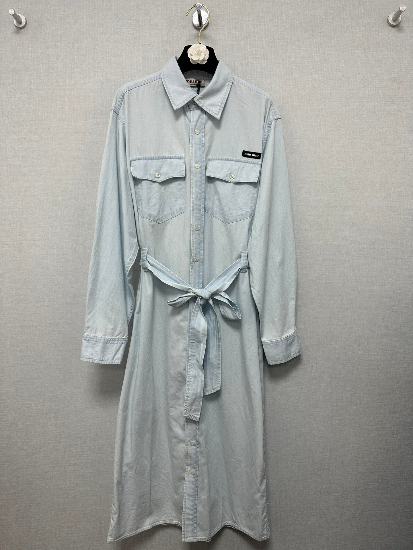 Cette robe chemise Miu Miu en denim bleu clair allie allure décontractée et élégance moderne.
