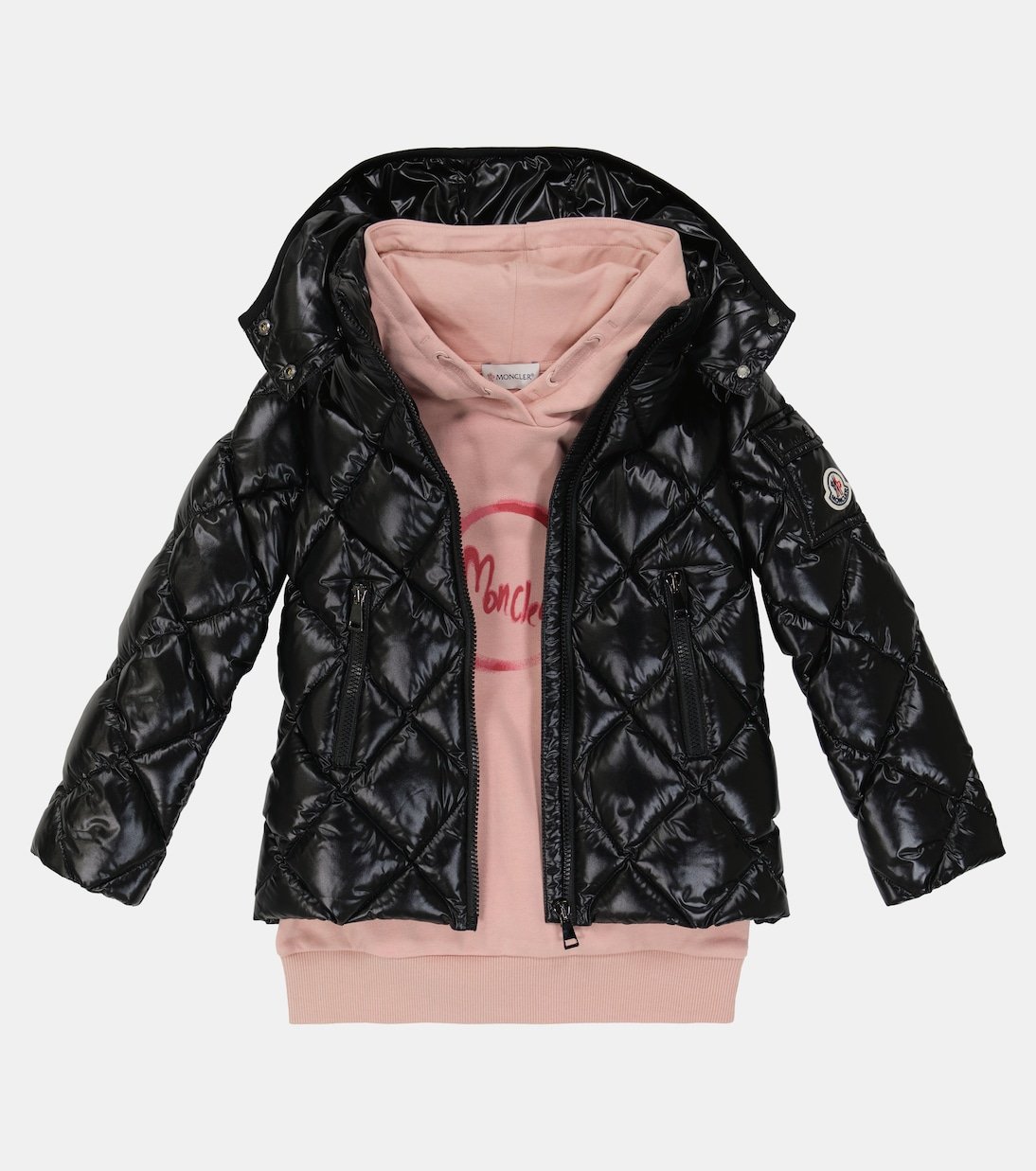 Conçue en jersey de coton avec un envers en tissu polaire doux, cette robe à capuche rose de Moncler Enfant arbore le logo du label imprimé sur le devant et comporte des bords côtelés.