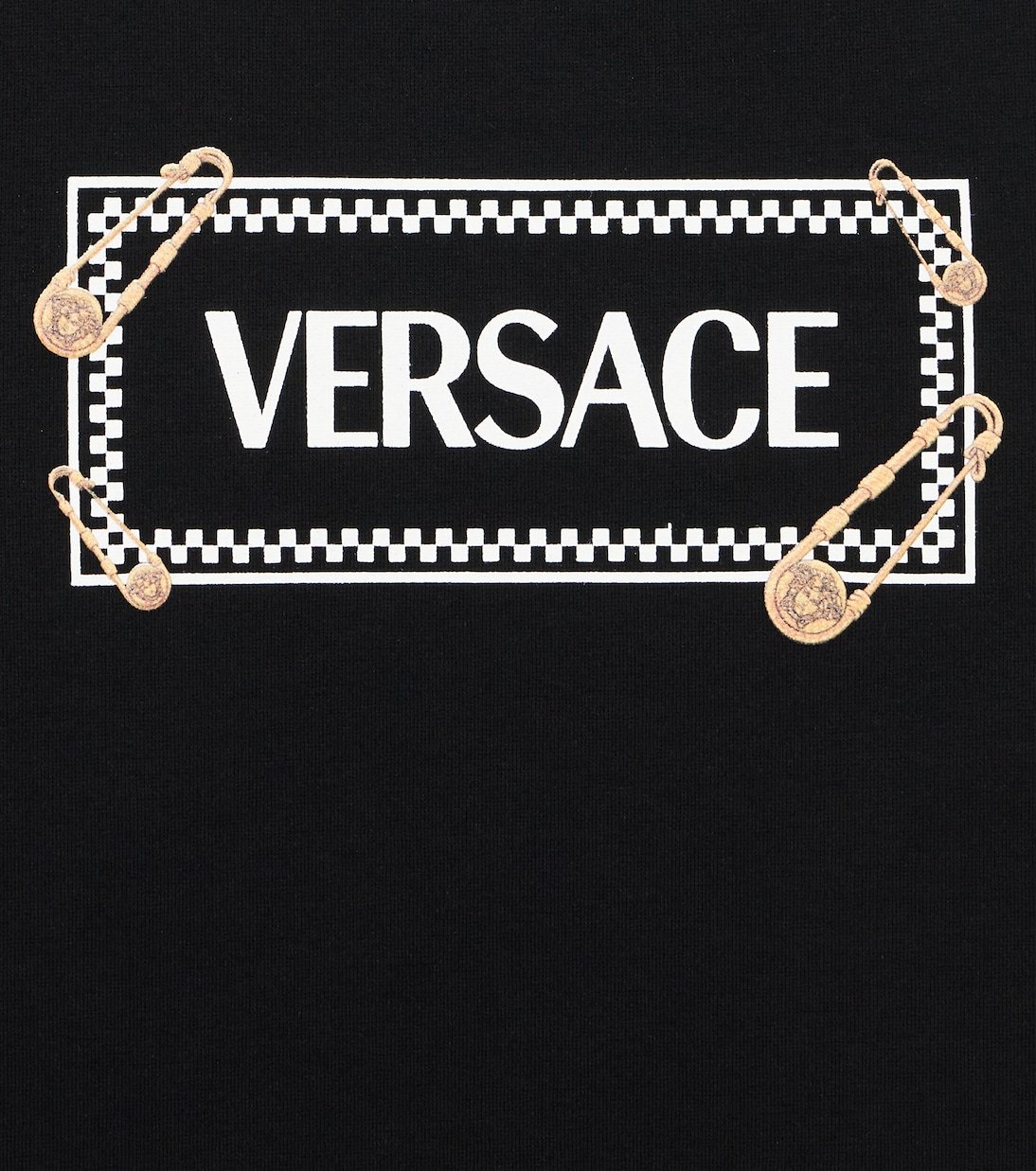 Inspiré de l’esthétique rock punk, le motif épingle à nourrice de Versace Kids compte parmi les codes les plus emblématiques du label. Elle est imprimée le long du logo, sur le devant de cette robe en jersey facile à assortir.
