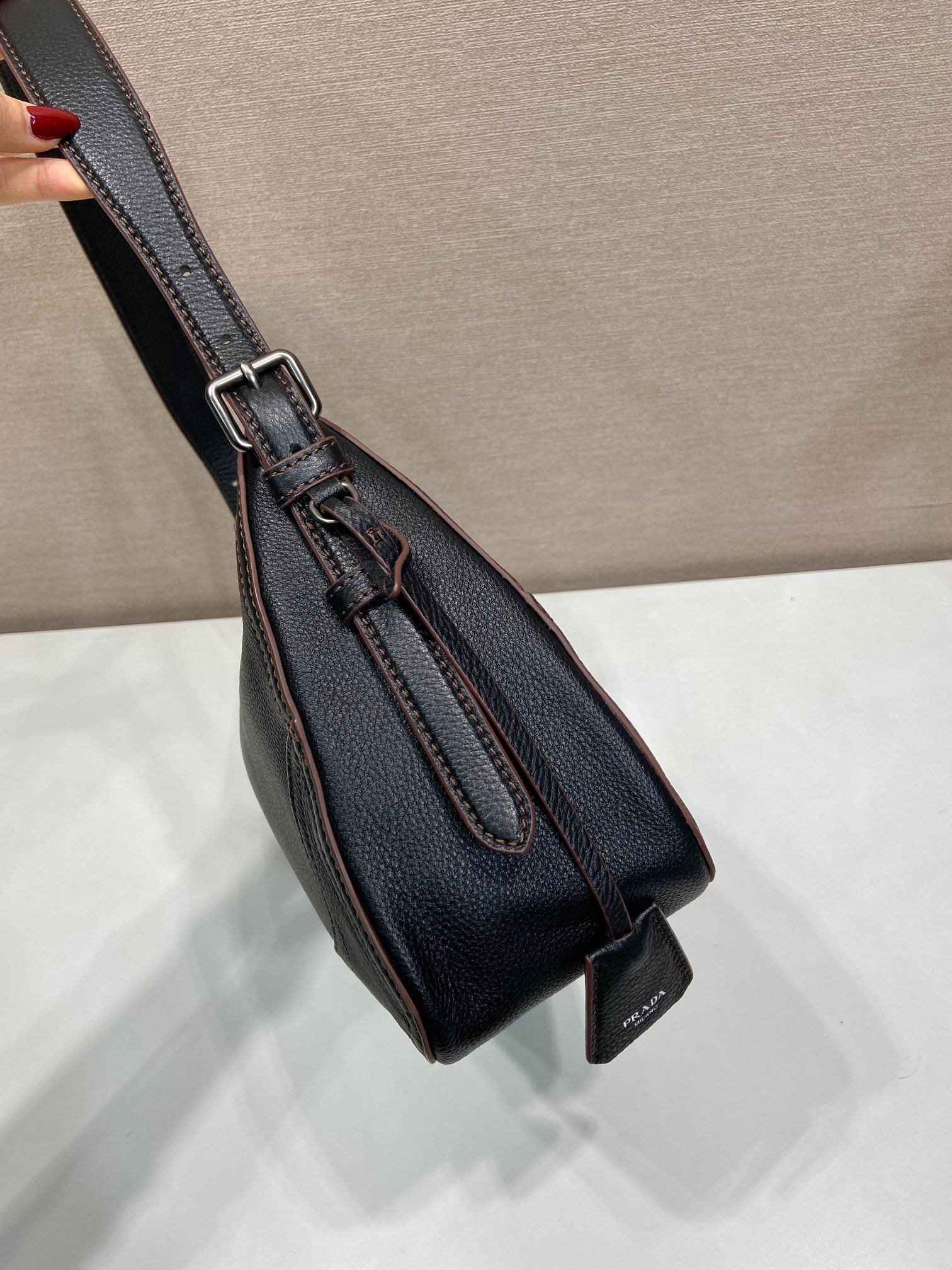 - Design élégant : Esthétique épurée avec une finition soignée, emblématique de la maison Prada.