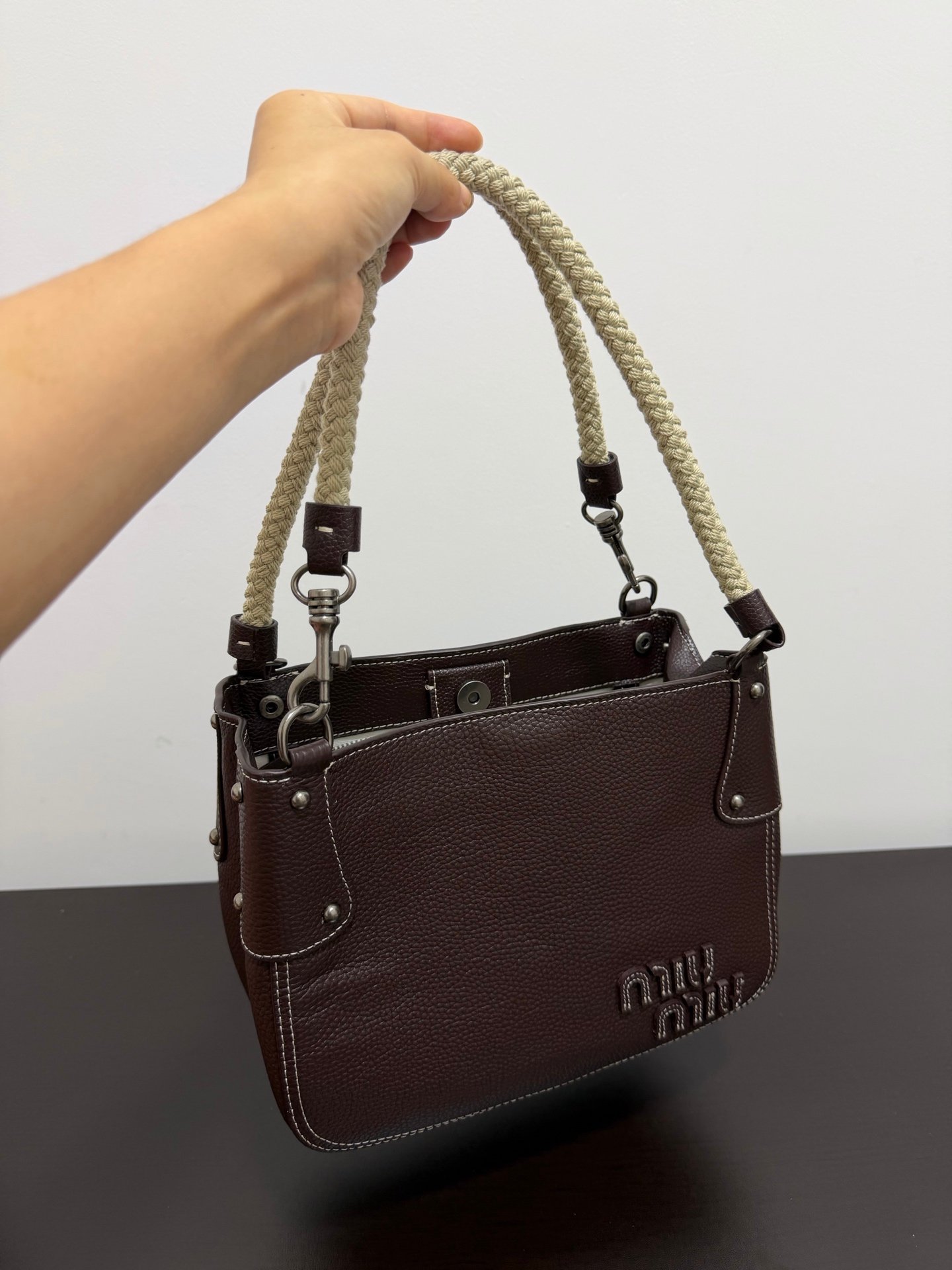 Fabriqué en cuir de qualité supérieure, il nécessite un entretien simple : essuyer avec un chiffon doux. Ce sac Miu Miu reflète un savoir-faire exceptionnel et constitue un investissement mode durable. Ajoutez une touche de luxe à votre collection avec cet accessoire incontournable.