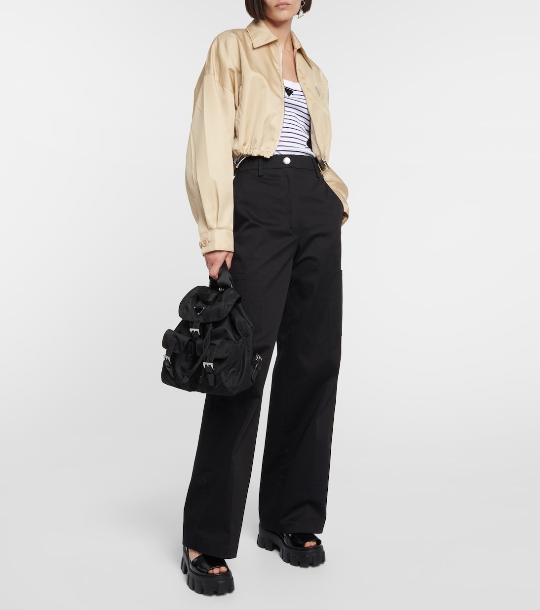 Adoptez une allure très Prada avec ce sac à dos en nylon, aussi tendance aujourd’hui que lors de son lancement au début des années 1990. Fabriqué en Italie, ce modèle trouve l’équilibre entre la forme et la fonction avec des poches multiples, des boucles de fermeture et des bretelles réglables. Notez sa plaque à logo et ses détails en cuir saffiano.