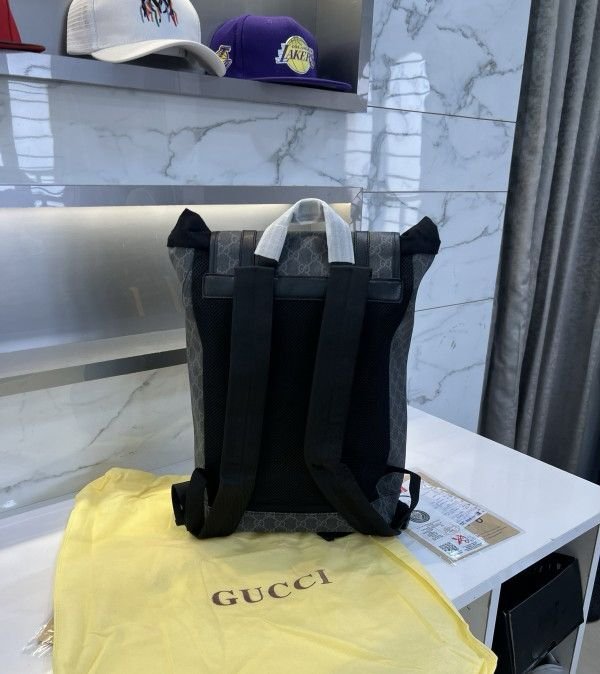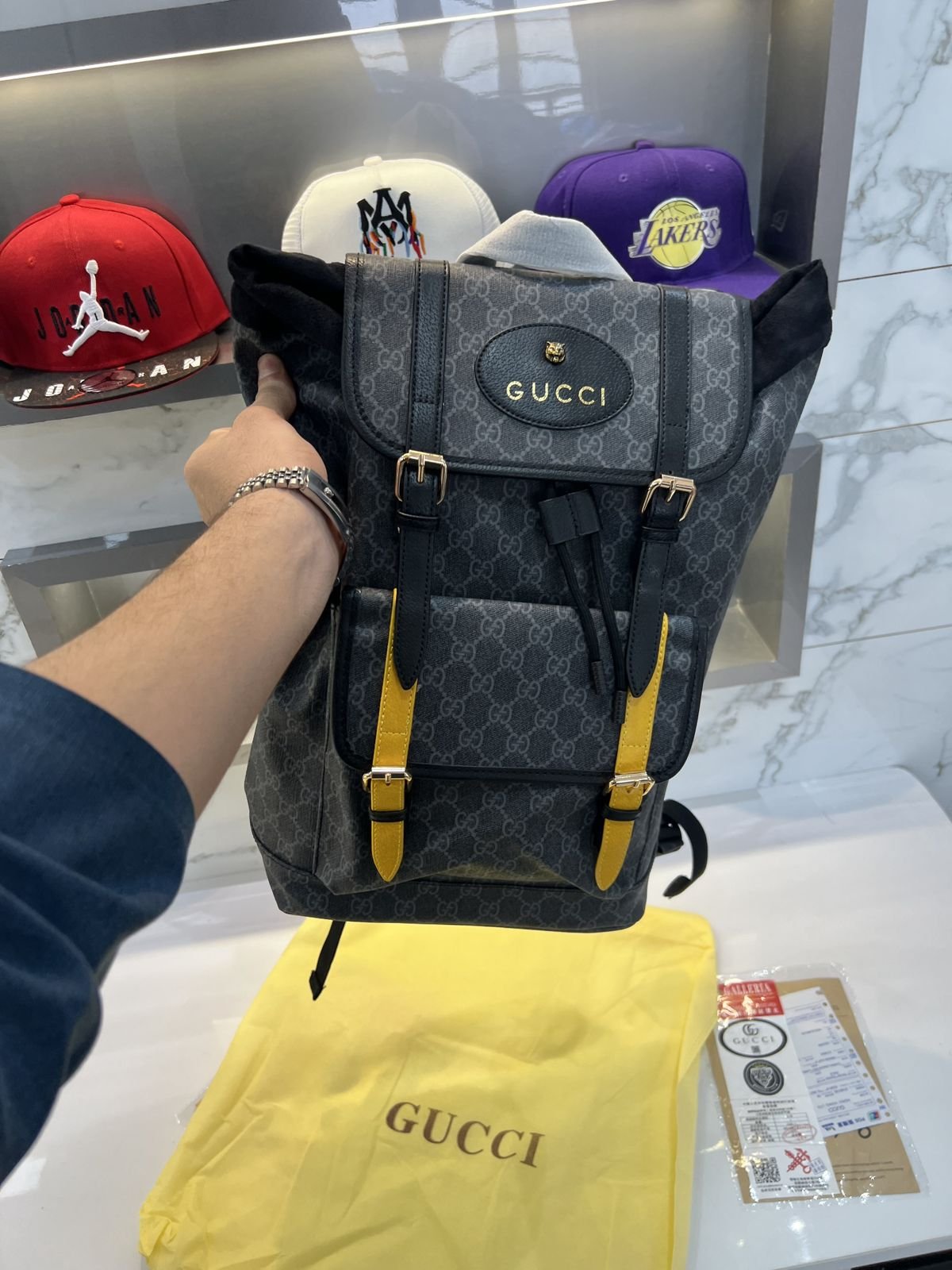 Sac à dos souple Gucci GG Supreme Web Straps Marron Jaune / Noir Jaune