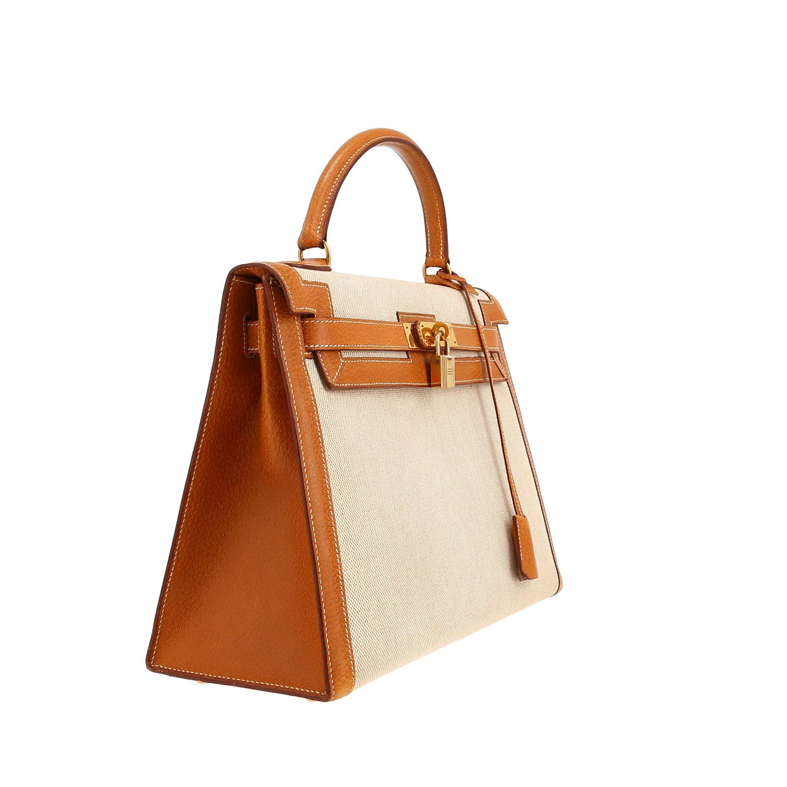 Sac de luxe Sac à main Hermès Kelly 32 cm en toile beige et cuir de Pecari gold