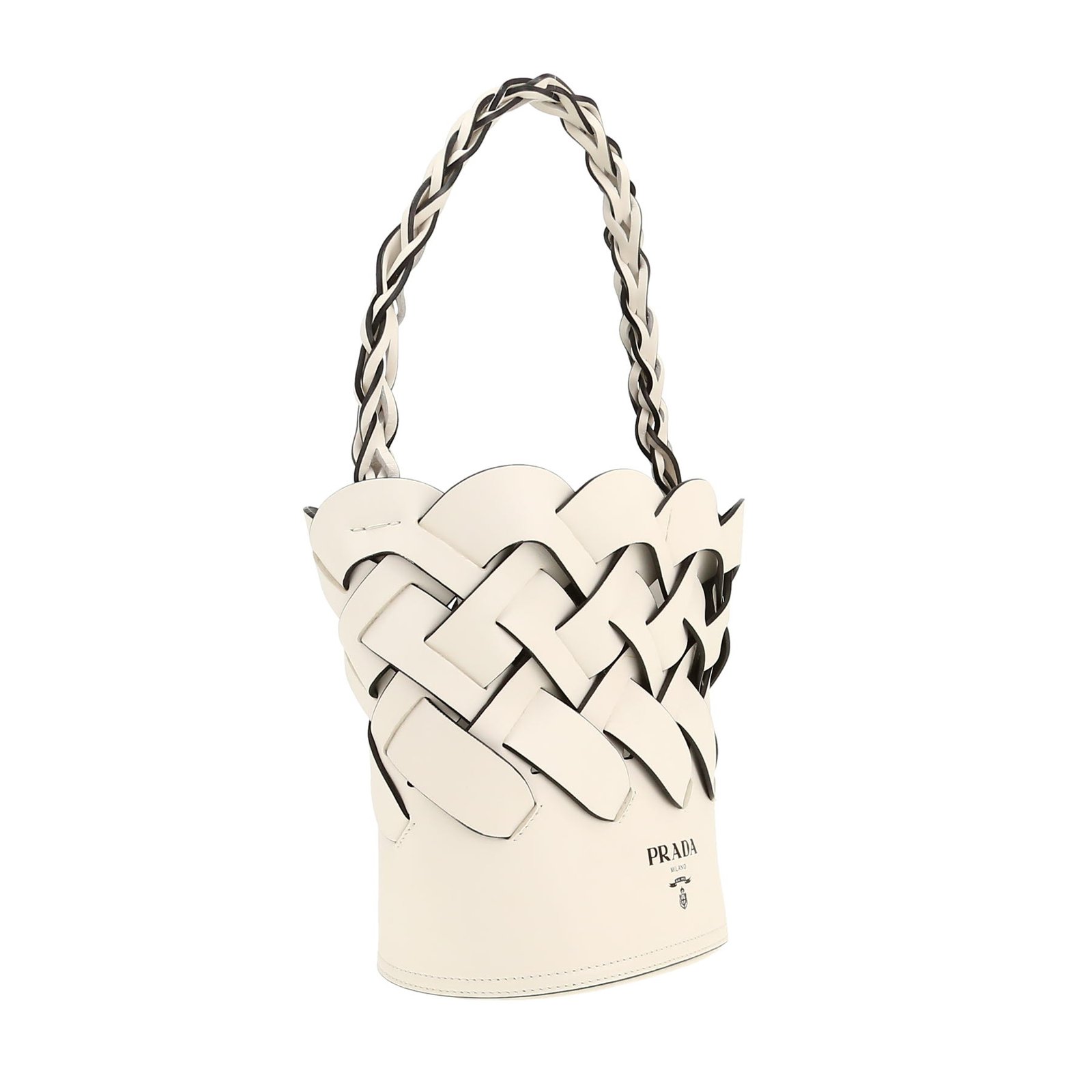 Sac de luxe Sac à main Prada Bucket bag en cuir blanc