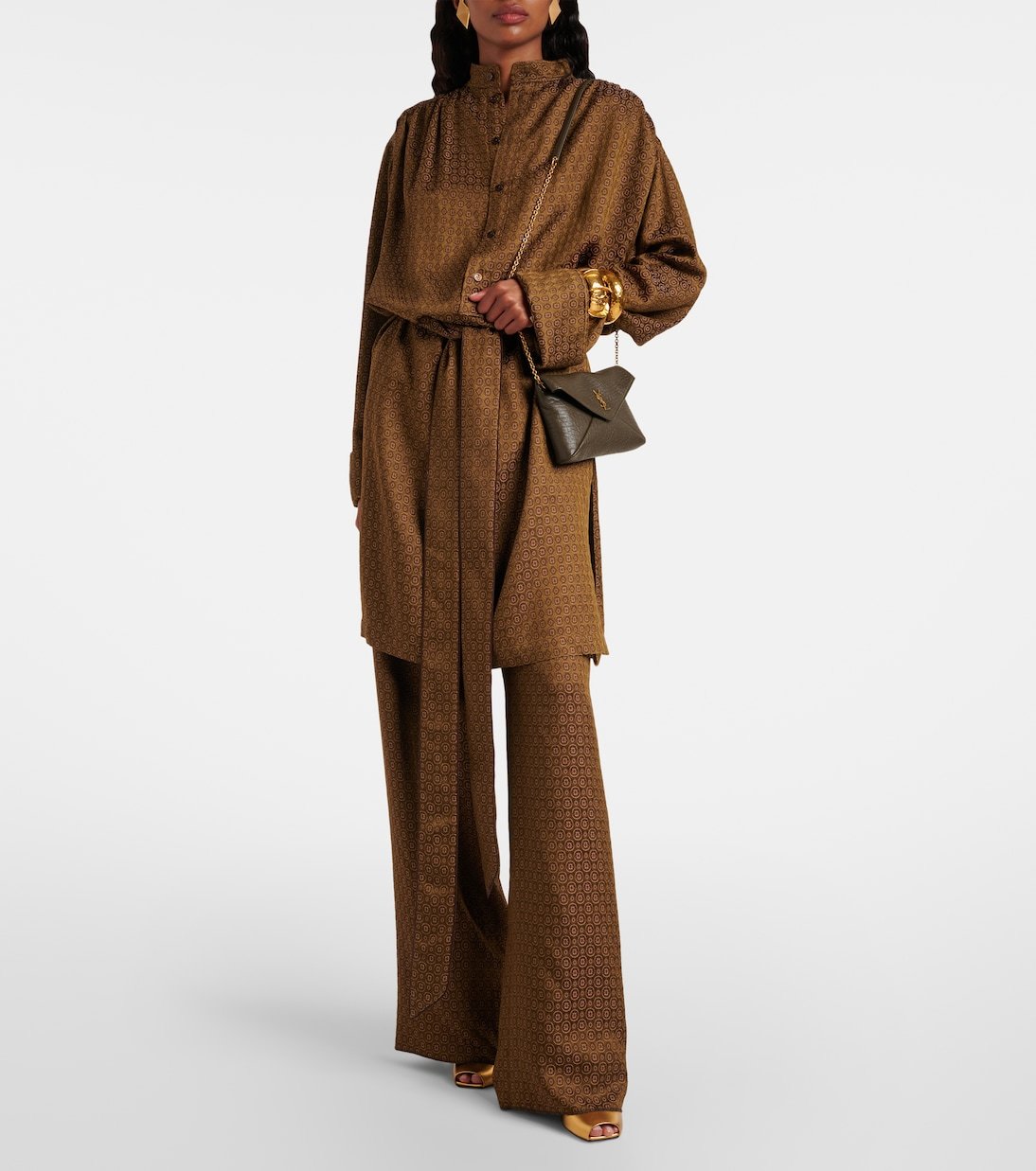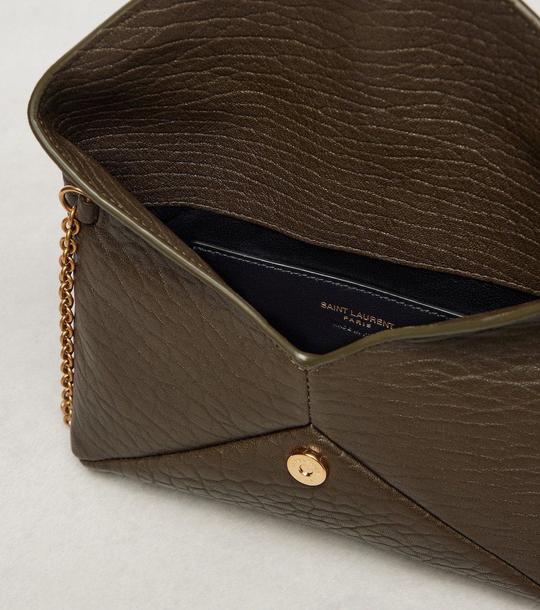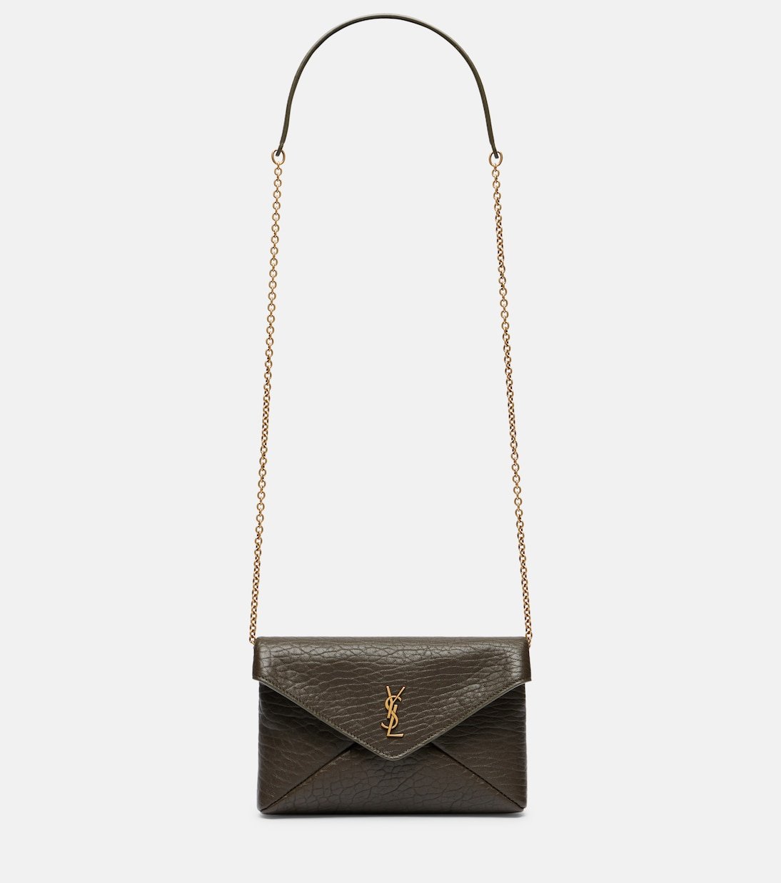 Le monogramme YSL, l’un des symboles les plus célèbres de la mode, se compose des initiales entremêlées du fondateur de Saint Laurent. C’est l’élément central de ce sac, confectionné en cuir doux et façonnée dans une silhouette enveloppe classique.