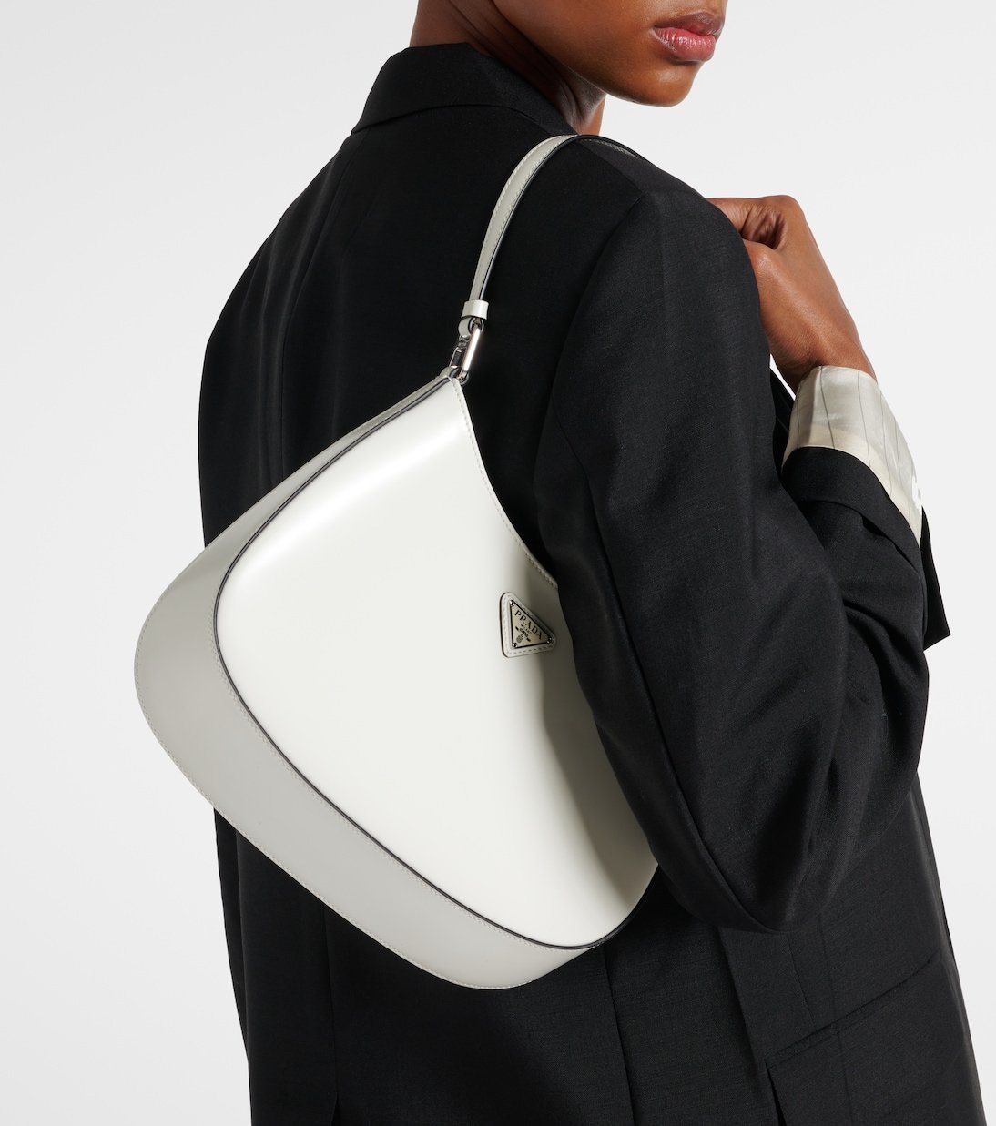 Dernier-né de la famille Prada, le sac Cleo Small est un petit modèle au design percutant. Arborant un blanc polyvalent, ce modèle en cuir à la silhouette incurvée est suspendu à une bandoulière afin de s’emporter partout avec vous. Notez son mythique logo triangulaire, une signature de longue durée de la maison.