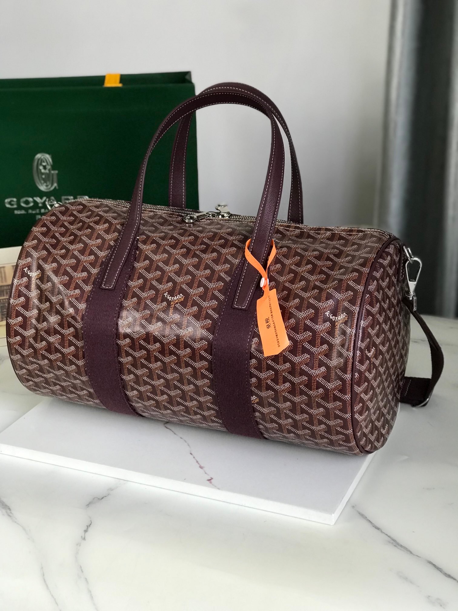 Découvrez le sac de sport Goyard Barrel 40, un accessoire d'exception alliant élégance et fonctionnalité pour vos activités sportives ou vos déplacements. Conçu en toile Goyardine marron, ce sac emblématique reflète le savoir-faire artisanal de la maison Goyard, offrant un style sophistiqué et durable.