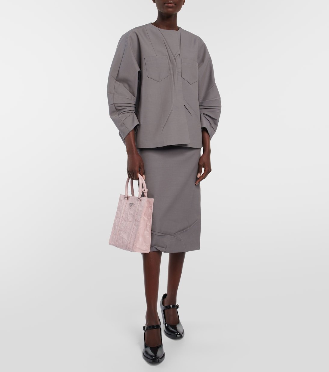 Confectionné en cuir texturé, ce sac signé Prada présente une silhouette rectangulaire, deux anses supérieures et une bandoulière amovible. Il est orné du logo triangulaire emblématique, qui incarne la simplicité, l’élégance et la qualité.
