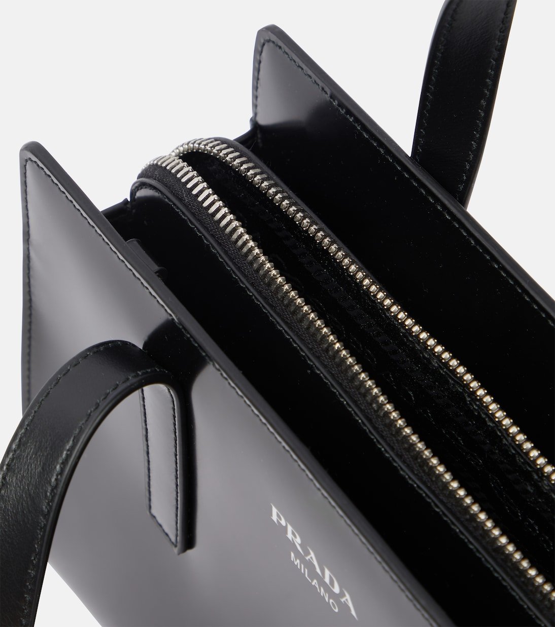 Ce sac de Prada deviendra rapidement l’un de vos favoris pour les saisons à venir. Réalisée en cuir verni noir brillant, sa silhouette carrée se voit rehaussée du logo sur le devant.