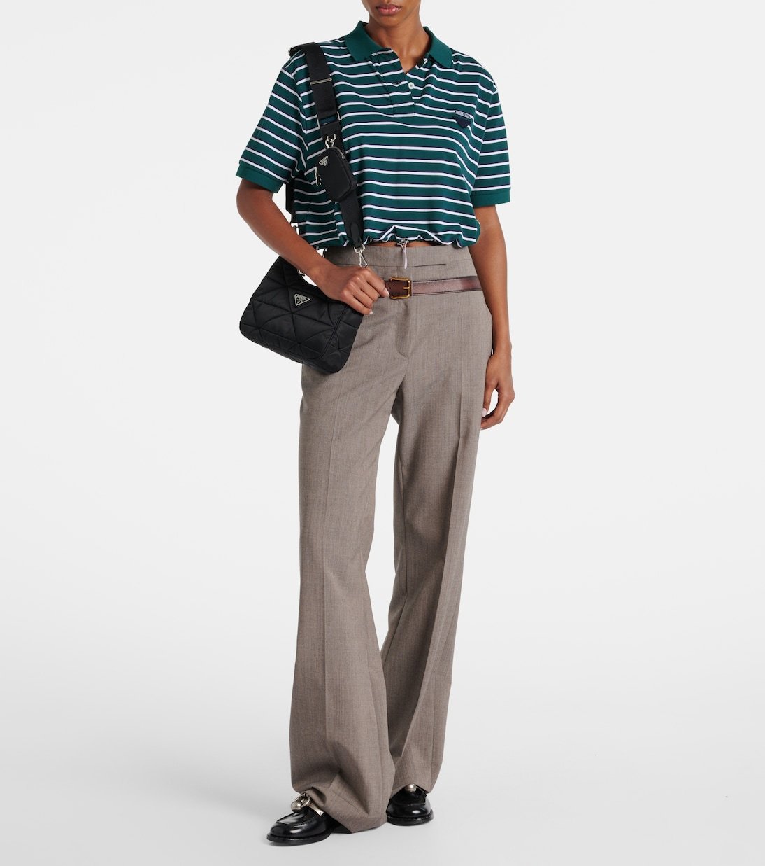 Ce sac noir est doté d’un matelassage triangulaire en clin d’œil au logo emblématique de Prada, qui occupe également une place de choix sur le devant. Fabriqué en Italie à partir de nylon matelassé, il présente une silhouette incurvée avec une bandoulière ajustable à logo en jacquard et une pochette assortie.