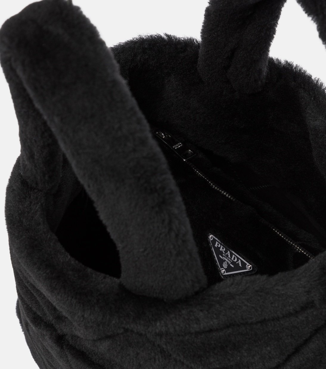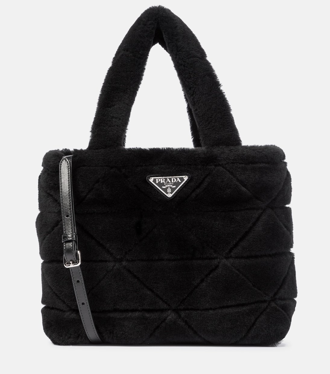 Prada signe un accessoire tactile et cosy avec ce doux sac noir. Fabriqué en Italie en shearling, ce modèle à la silhouette minimale se dote de poignées mais aussi d’une fine bandoulière optionnelle en cuir. Notez qu’il renferme une pochette séparable assortie, arborant elle aussi le célèbre appliqué à logo triangulaire.
