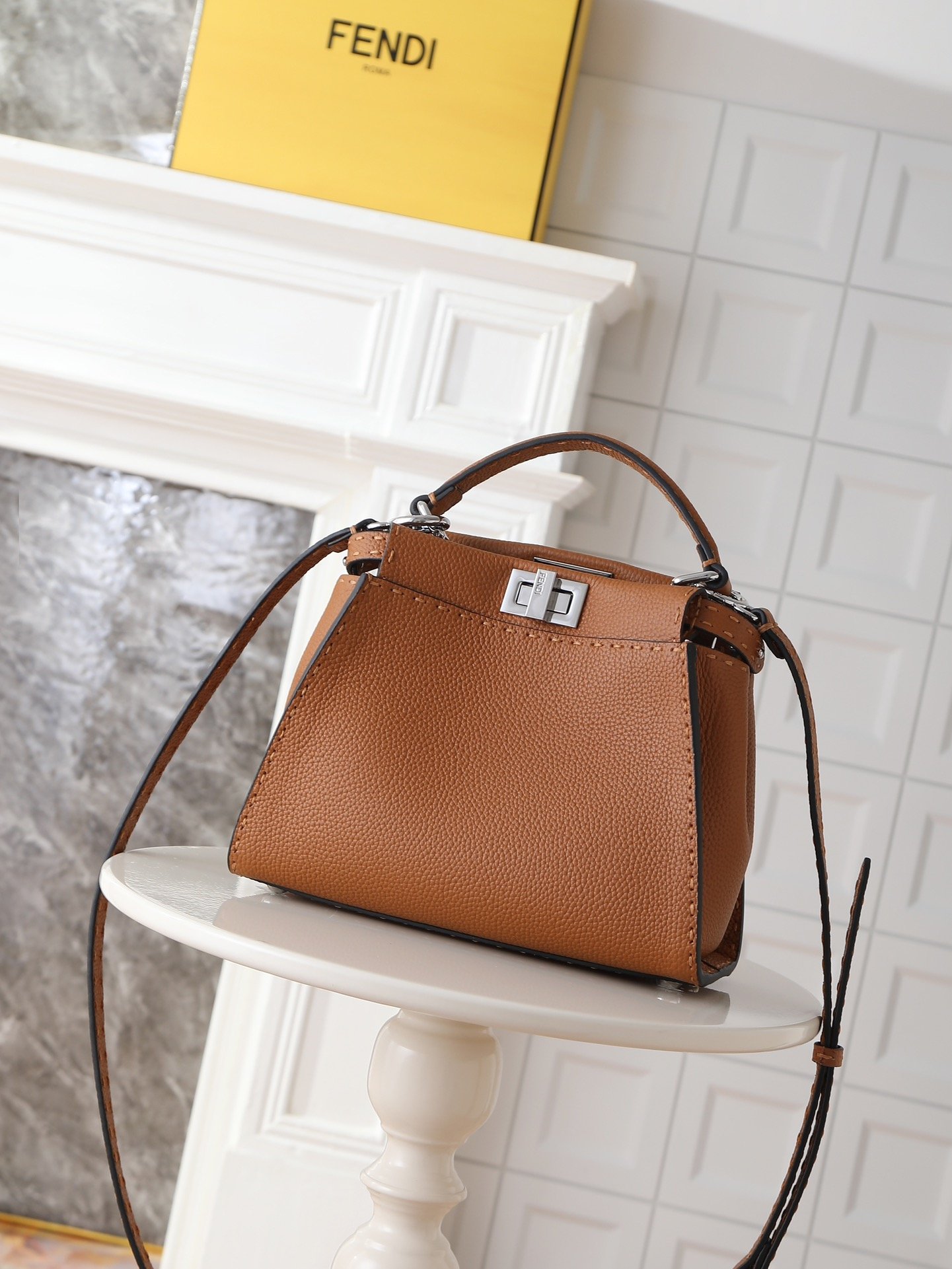 Découvrez l’élégance intemporelle du sac Fendi Peekaboo Mini en cuir Cuoio Romano, une pièce emblématique conçue pour sublimer votre style avec sophistication. Parfait pour les occasions formelles ou casual chic, ce sac allie savoir-faire artisanal et design moderne, offrant une touche de luxe à chaque tenue.