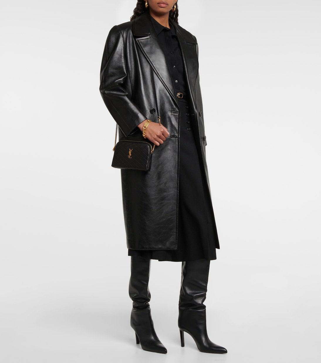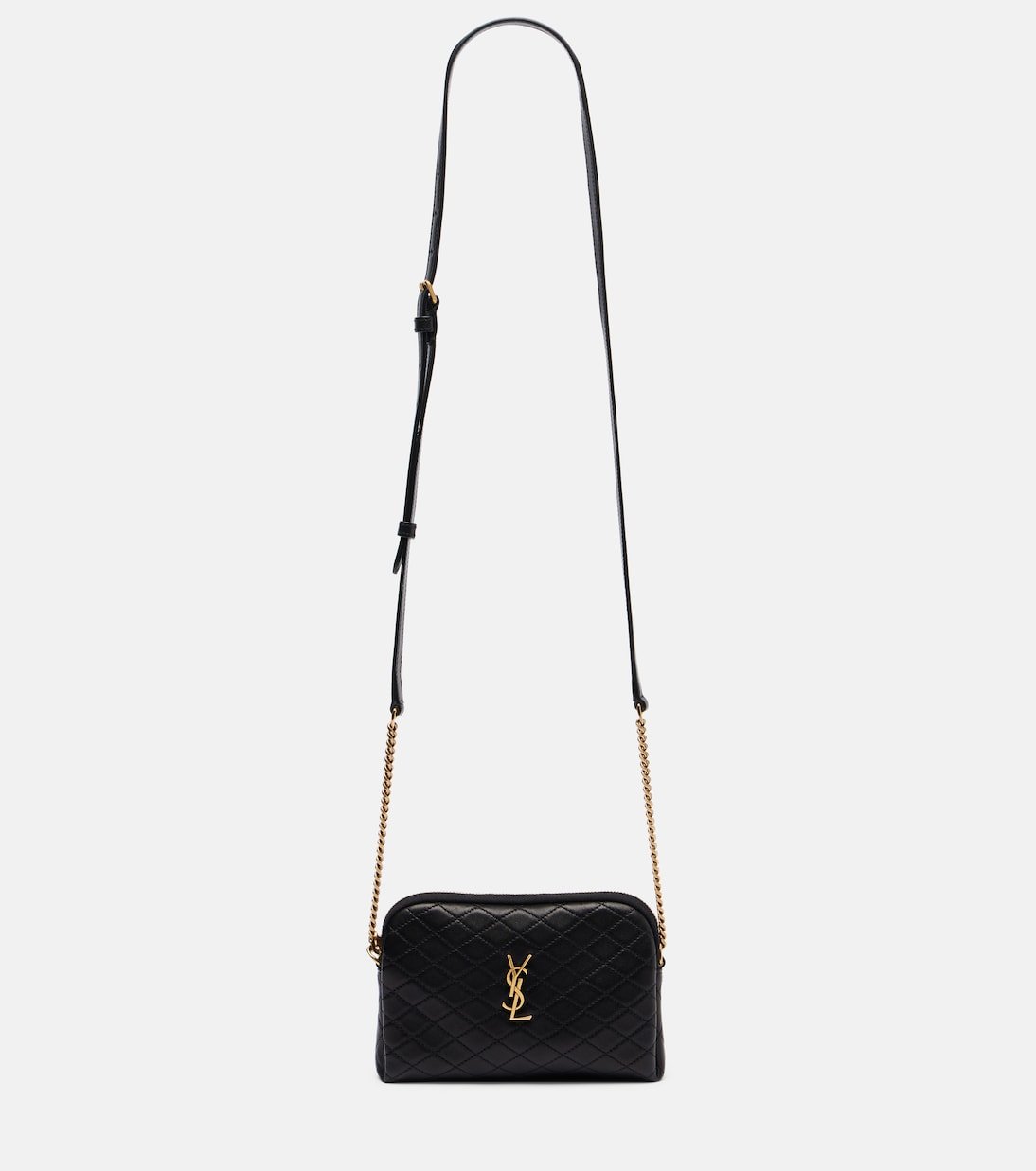 Le modèle Gaby emblématique de Saint Laurent est revisité avec ce sac à matelassage carré. Suspendu à une chaîne dorée réglable, ce modèle zippé réalisé en cuir revêt un monogramme métallique.