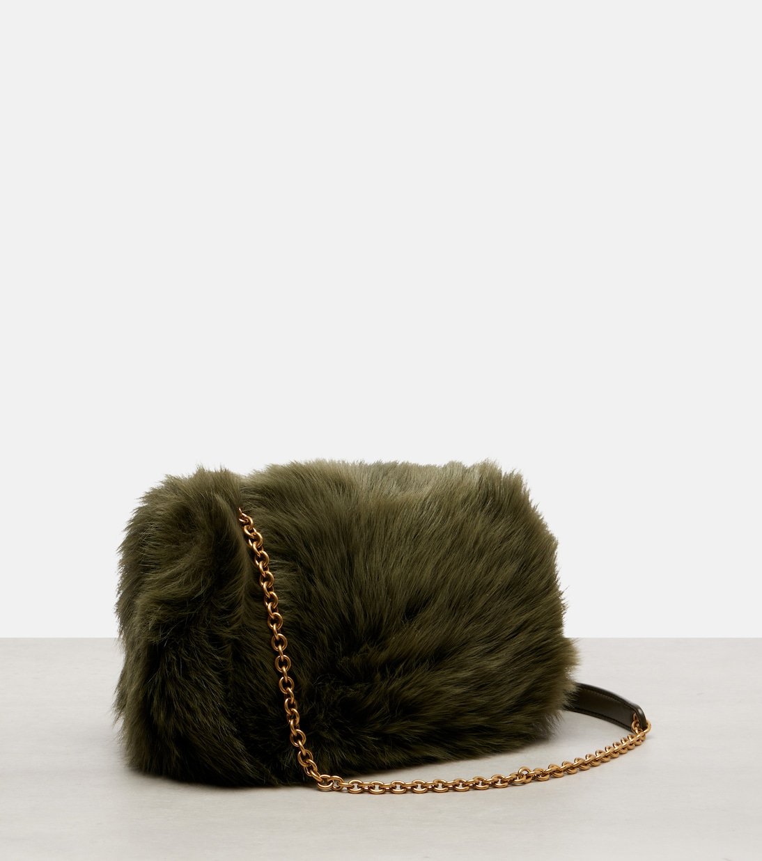Le sac Jamie 4.3 Mini de Saint Laurent est une nouvelle interprétation d’un modèle convoité. Réalisé en shearling doux, ce modèle est doté d’une bandoulière chaîne dorée et du monogramme de la maison sur le rabat.