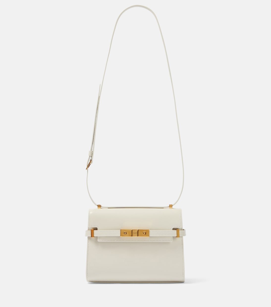 Ce sac à bandoulière Manhattan Mini est signé Saint Laurent. Il est fabriqué en cuir et présente une bandoulière ajustable, ainsi que des détails dorés.