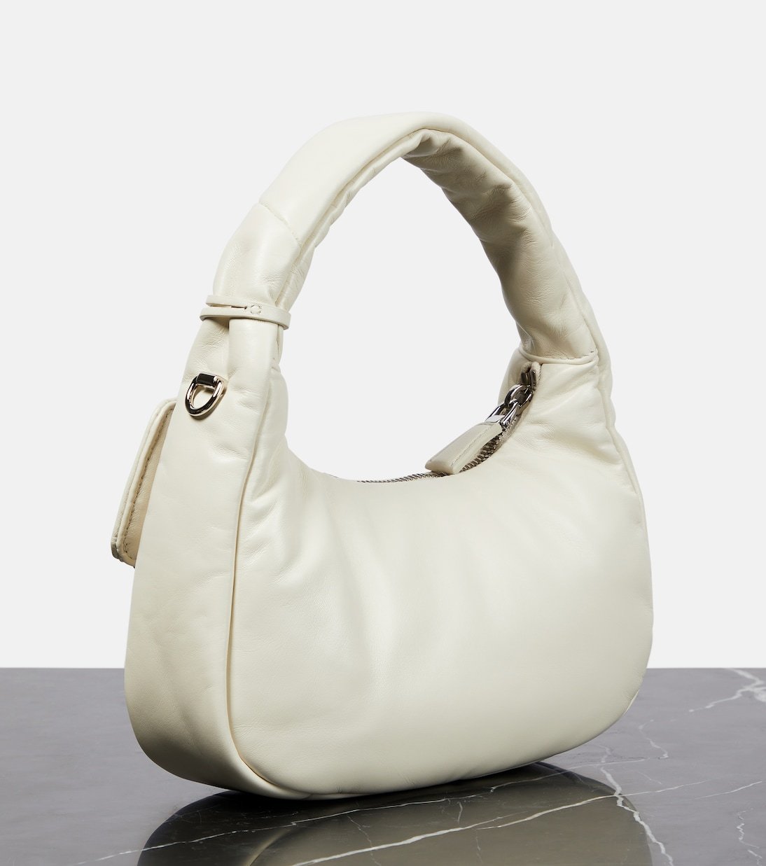 Ce sac Mini est confectionné en cuir nappa doux et doté d’une fermeture zippée sur le dessus ainsi que d’une bandoulière amovible.