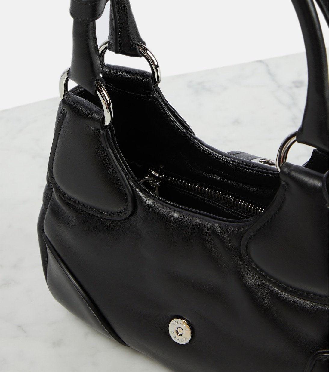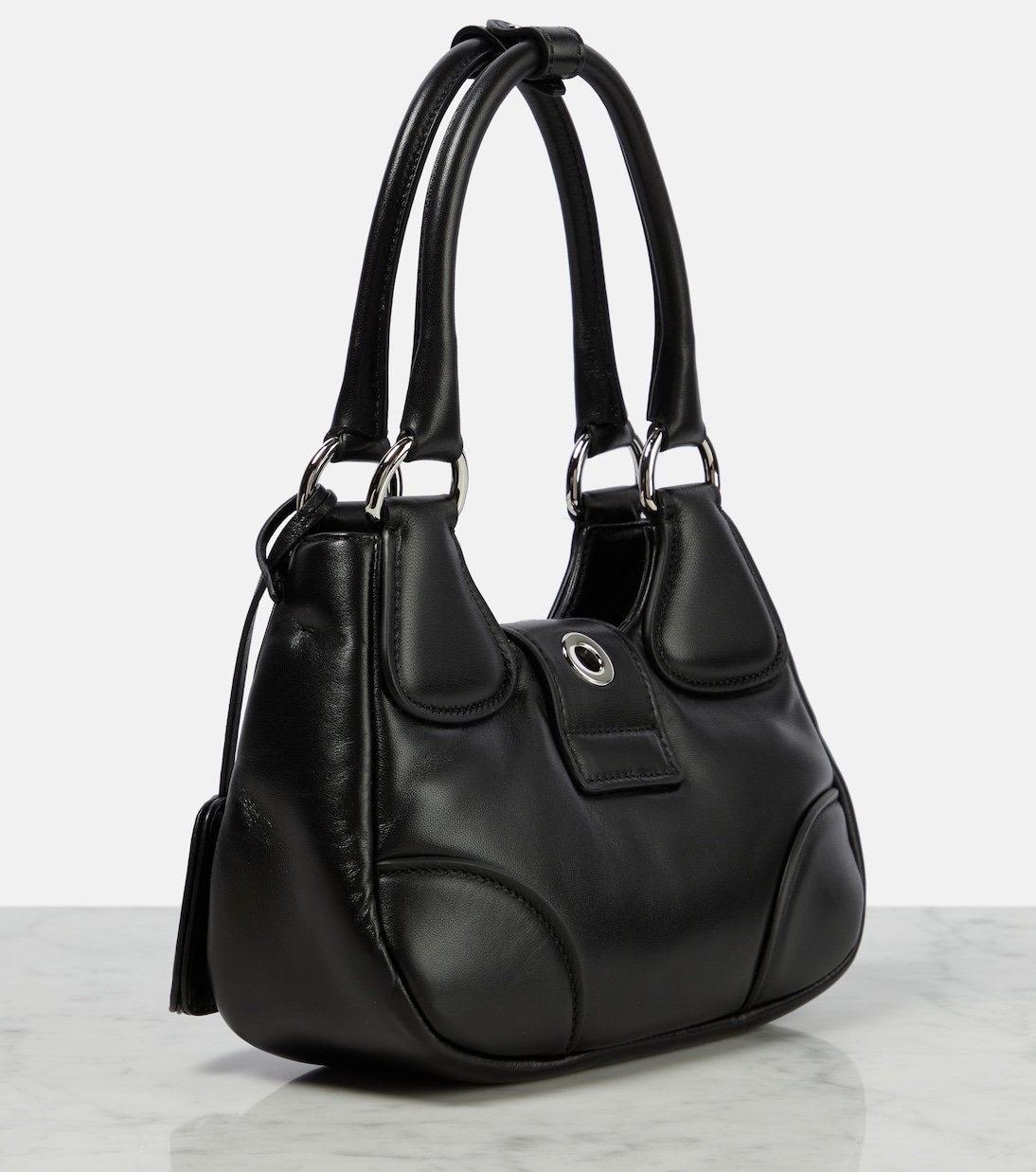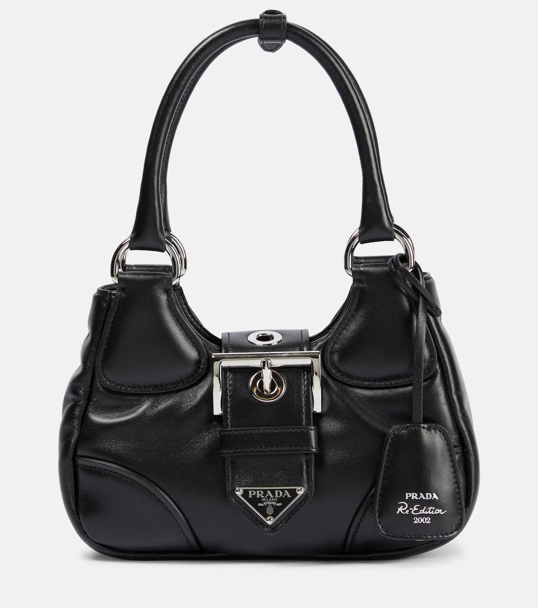 Le sac Moon de Prada se caractérise par sa longue fermeture à boucle ornée d’un logo triangulaire ton sur ton. Réalisé en cuir nappa matelassé, ce petit modèle présente une silhouette structurée avec des anses supérieures et un charm amovible.