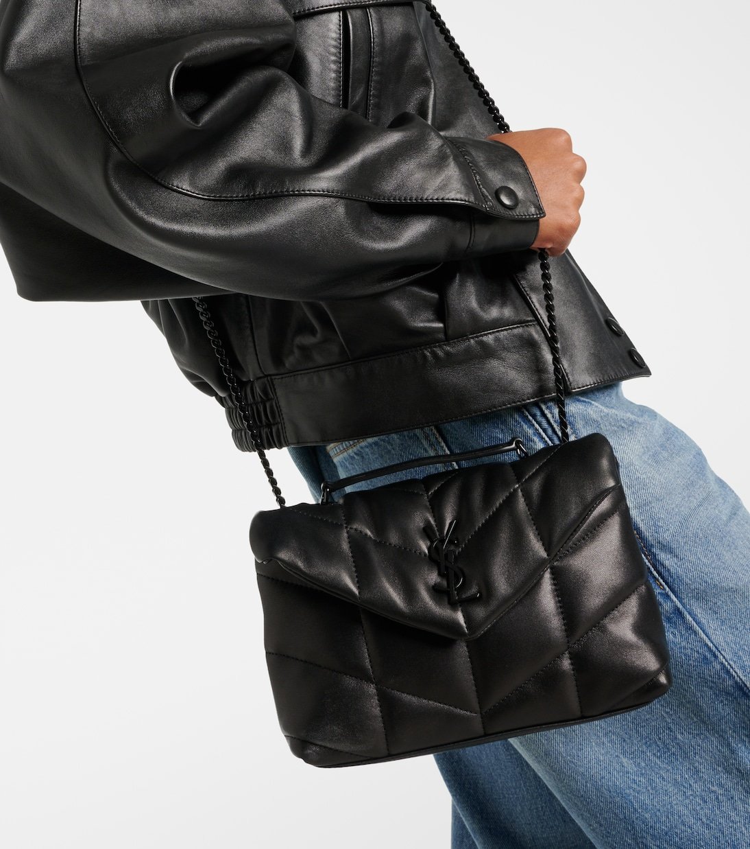 Nouvelle version du Loulou, le sac Puffer Toy de Saint Laurent est doté d’un extérieur légèrement rembourré et d’un matelassage à chevrons signature. Il est réalisé en Italie à partir de cuir d’agneau et arbore le monogramme YSL emblématique du label.