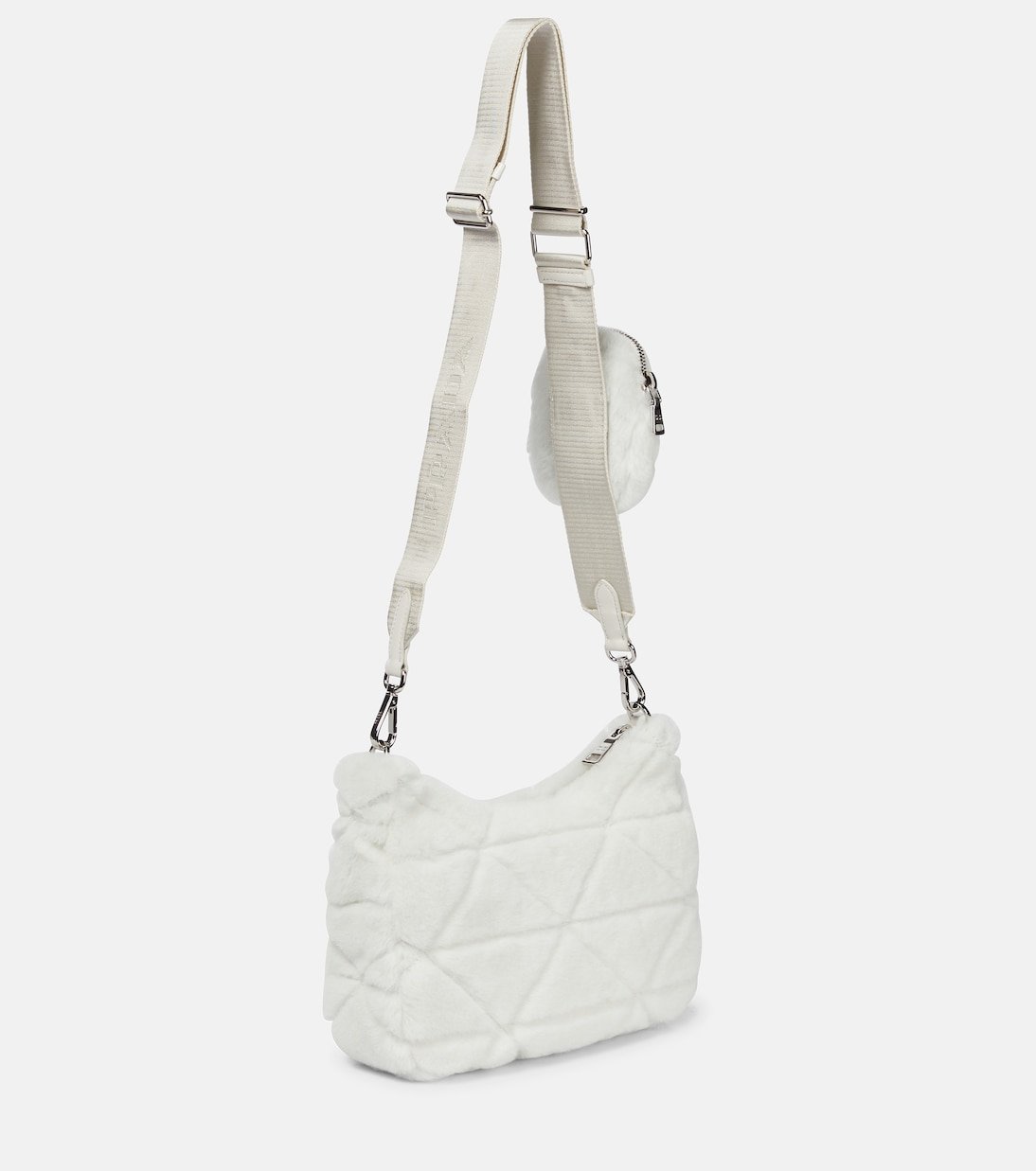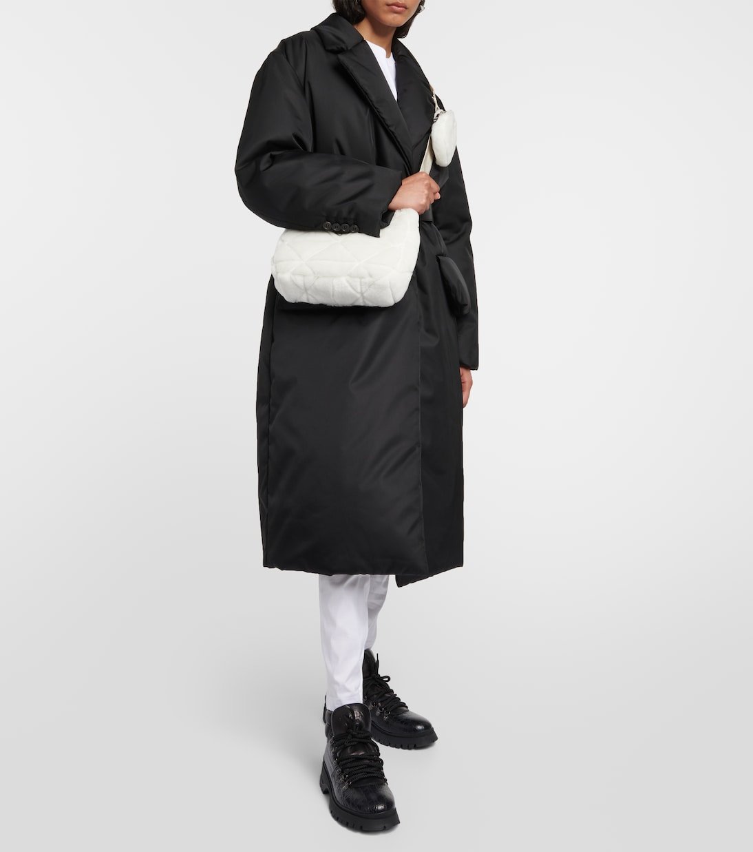 Optez pour un style rétro en remontant le temps avec ce sac Prada, une réédition d’un modèle lancé dans les années 2000. Ce sac conçu en shearling blanc matelassé présente une coupe fuselée emblématique. De plus, il est décoré de la célèbre plaque logo triangulaire.