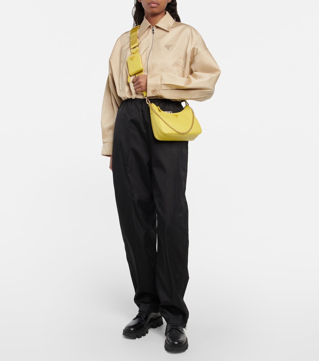 Le sac Re-Edition de Prada revisite le modèle issu des archives de 2005. Cette version en cuir Saffianose dote d’une silhouette rectangulaire, d’une anse en chaîne dorée amovible et d’une bandoulière réglable.