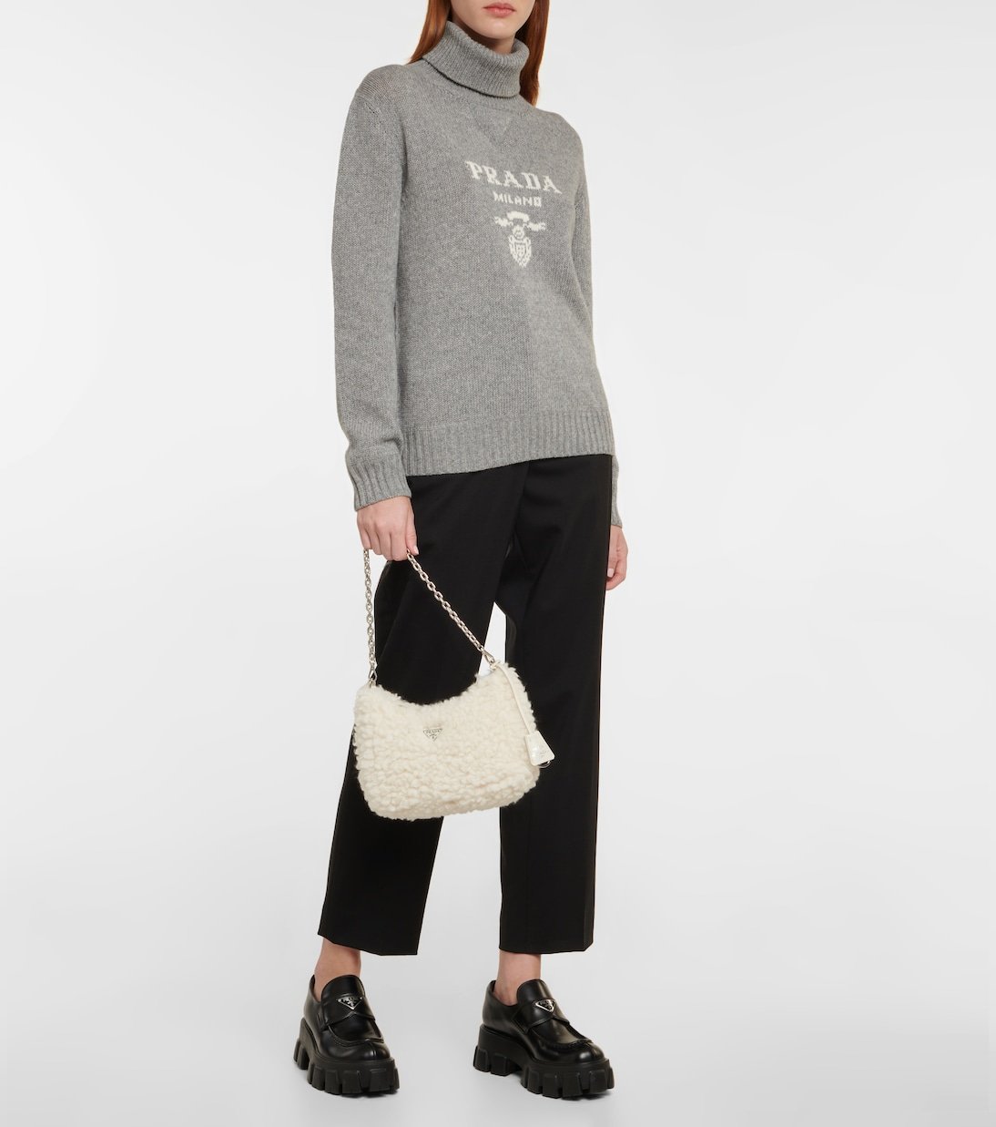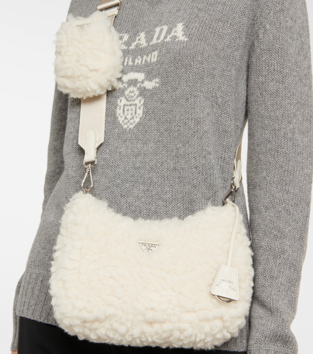Le sac Re-Edition 2005 Small de Prada revisite le célèbre modèle issu des archives. Façonné en soie, laine et cachemire doux, cet accessoire texturé blanc arbore une poignée chaîne argentée détachable ainsi qu’une bandoulière ajustable.
