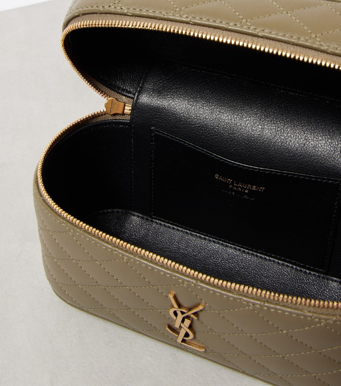 Depuis sa création en 1961, le label Saint Laurent est prisé pour son esthétique parisienne élégante. Le sac vanity Gaby est confectionné en cuir matelassé et orné du motif Cassandre iconique du label.