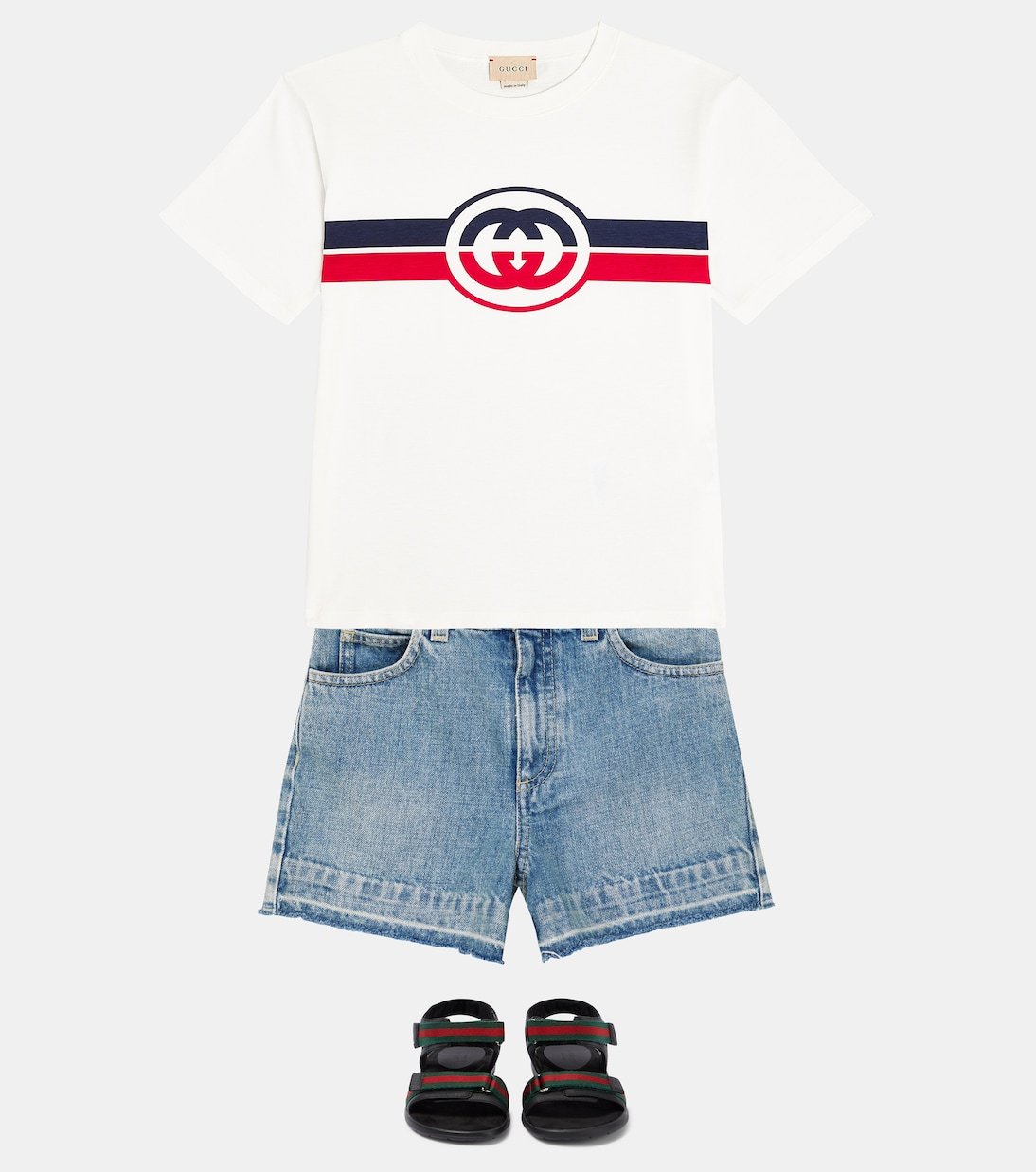 Préparez l’été de vos enfants avec ces sandales noires de Gucci Kids. Fermées à l’aide de brides en VELCRO® vertes et rouges à rayures, elles s’ajustent parfaitement à leur pied et sont confectionnées en Italie. Fabriquées en cuir de veau, elles sont montées sur de confortables semelles en caoutchouc.
