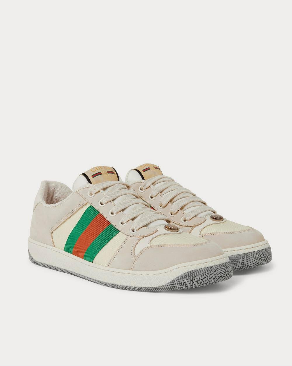 Baskets basses beiges en nubuck, maille et cuir à finitions en toile Gucci Screener