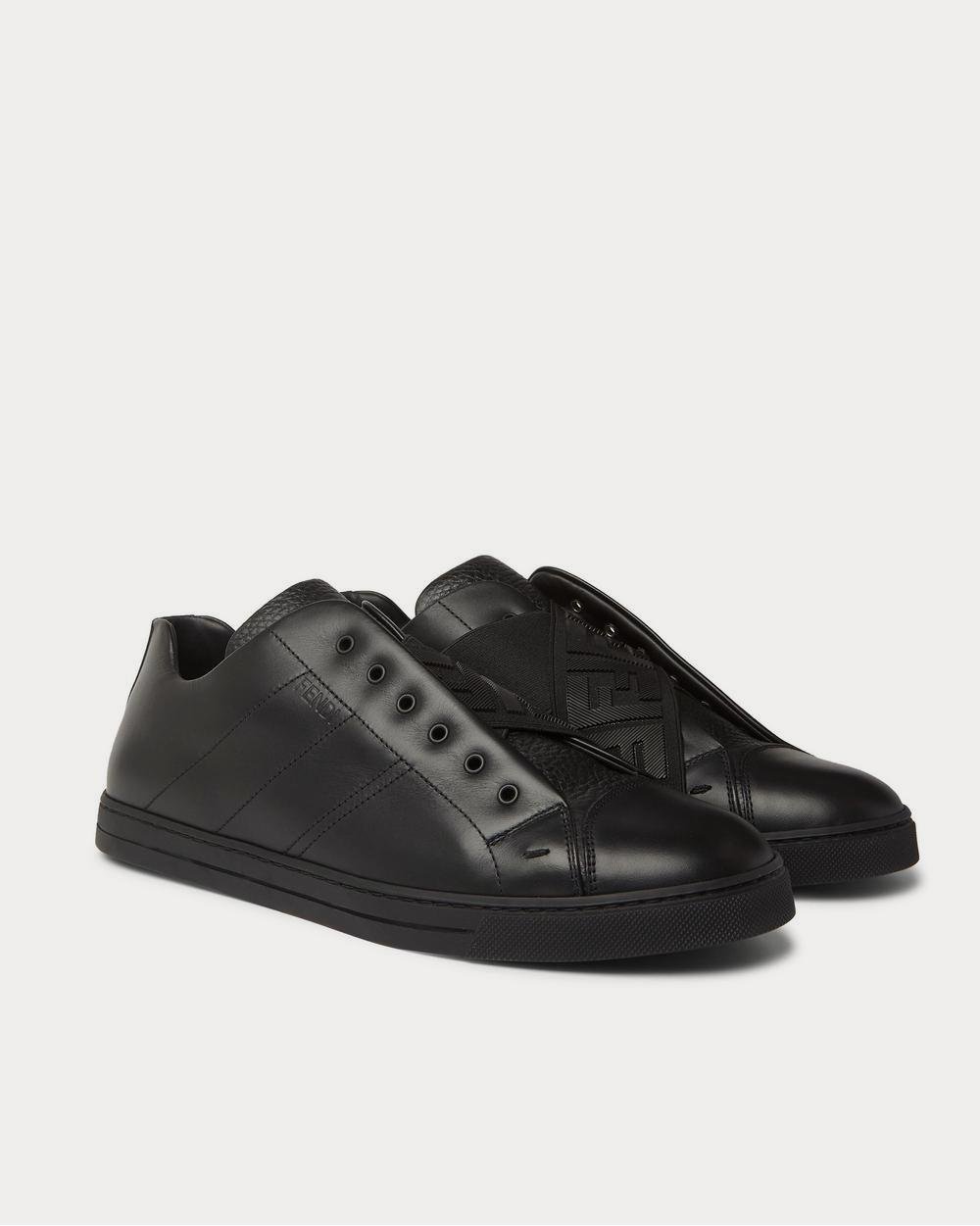 Baskets basses Fendi en cuir lisse et pleine fleur noires