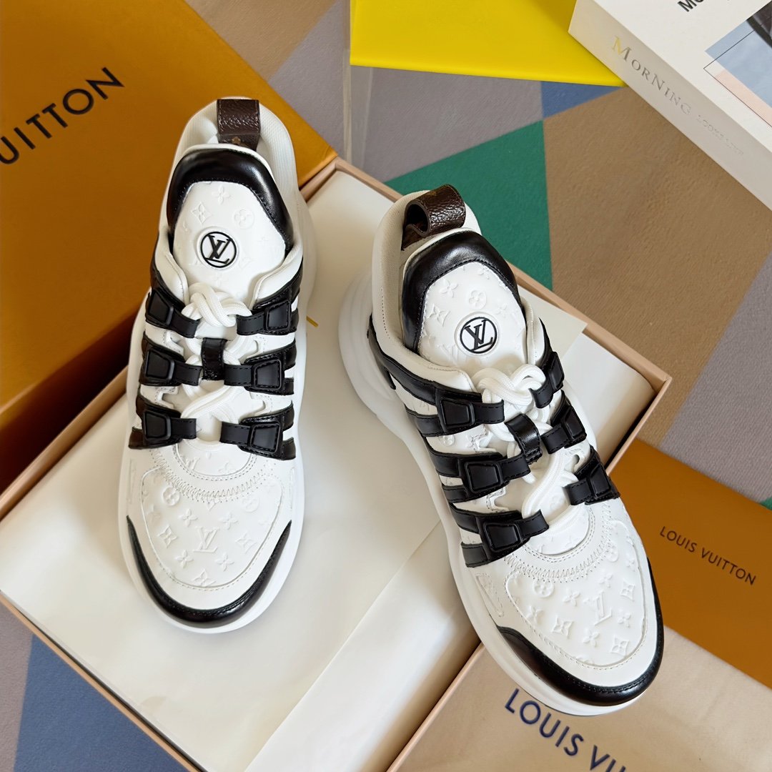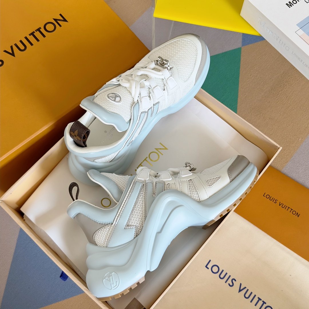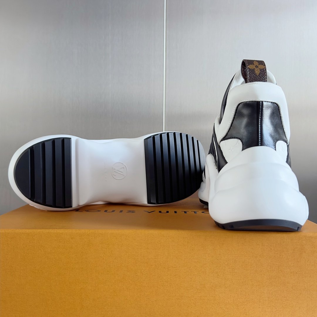 Fabriquée avec des matériaux de haute qualité, cette chaussure est conçue pour durer tout en conservant son aspect sophistiqué. Pour préserver sa beauté, il est recommandé de la nettoyer avec un chiffon doux et d’éviter l’exposition prolongée à l’humidité. La sneaker Louis Vuitton LV Archlight incarne l’alliance parfaite entre innovation, confort et luxe.