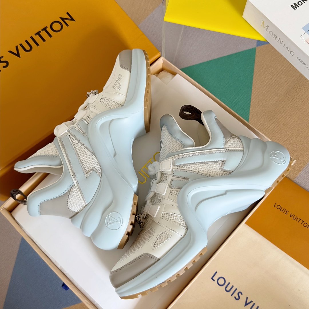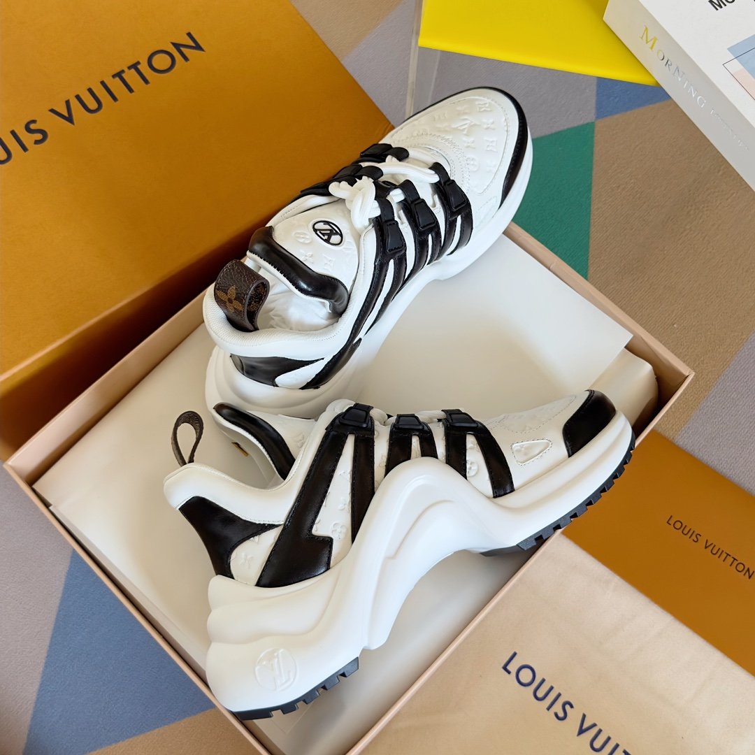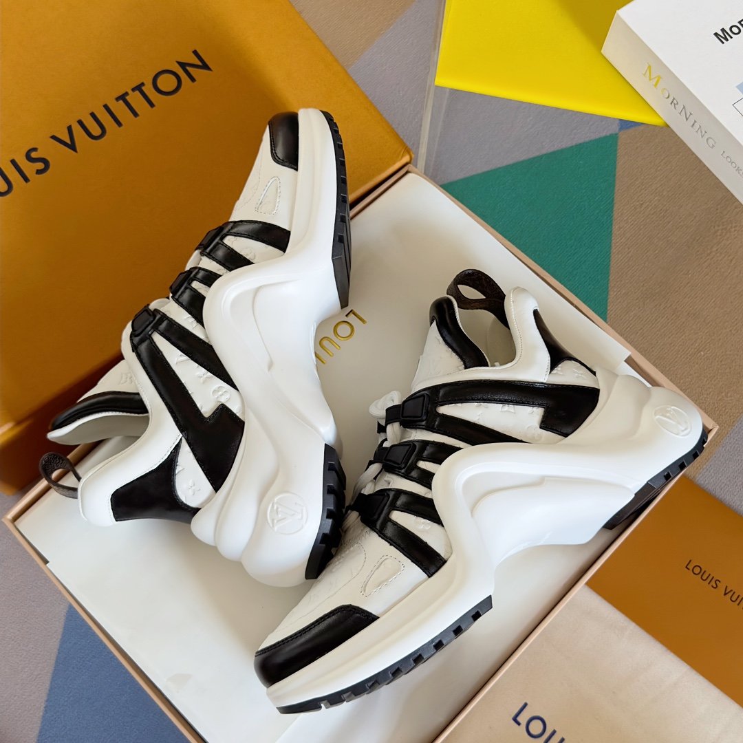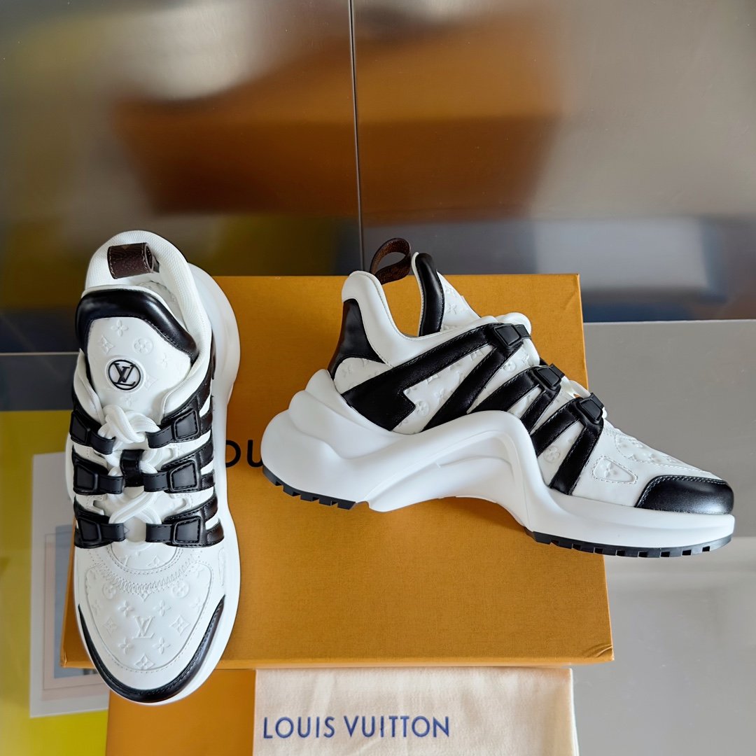 Fabriquée avec des matériaux de haute qualité, cette chaussure est conçue pour durer tout en conservant son aspect sophistiqué. Pour préserver sa beauté, il est recommandé de la nettoyer avec un chiffon doux et d’éviter l’exposition prolongée à l’humidité. La sneaker Louis Vuitton LV Archlight incarne l’alliance parfaite entre innovation, confort et luxe.