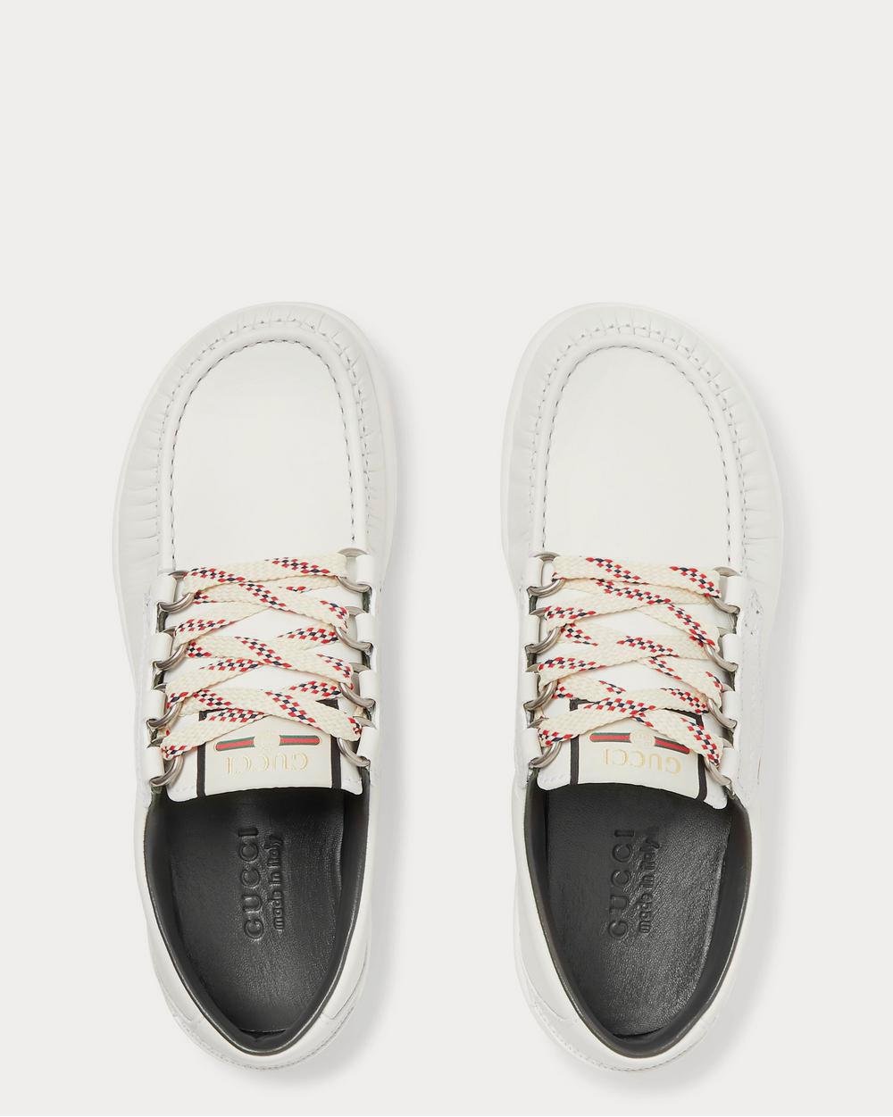 Baskets basses blanches en cuir à rayures et bordures en toile Gucci