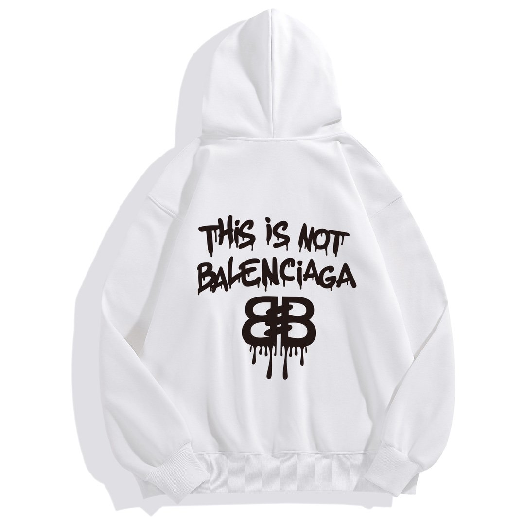Sweat à capuche streetwear avec logo graffiti Balenciaga et inscription « This is not Balenciaga ». Confort premium, coupe oversize et style audacieux.